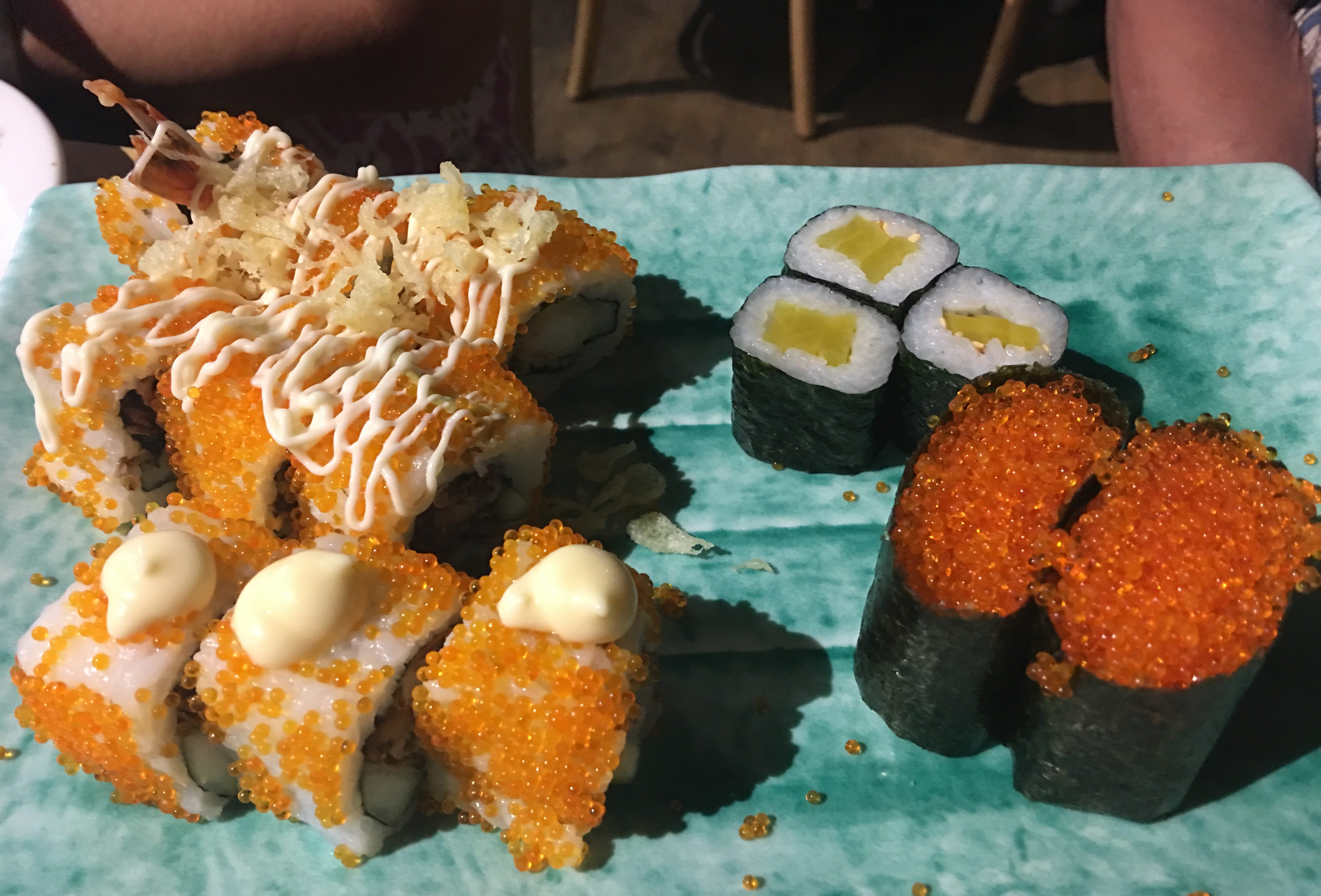 Some Spider Rolls, Ebi Tempura Rolls, Ebiko and Oshinko.