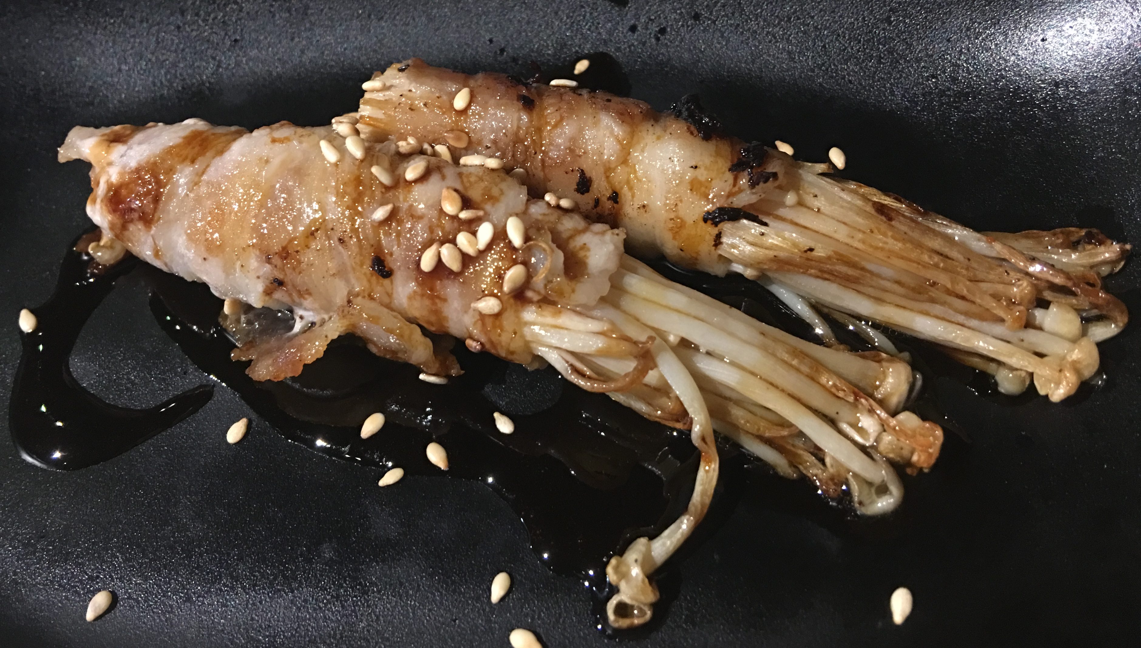 Bacon Wrapped Enoki Mushrooms.