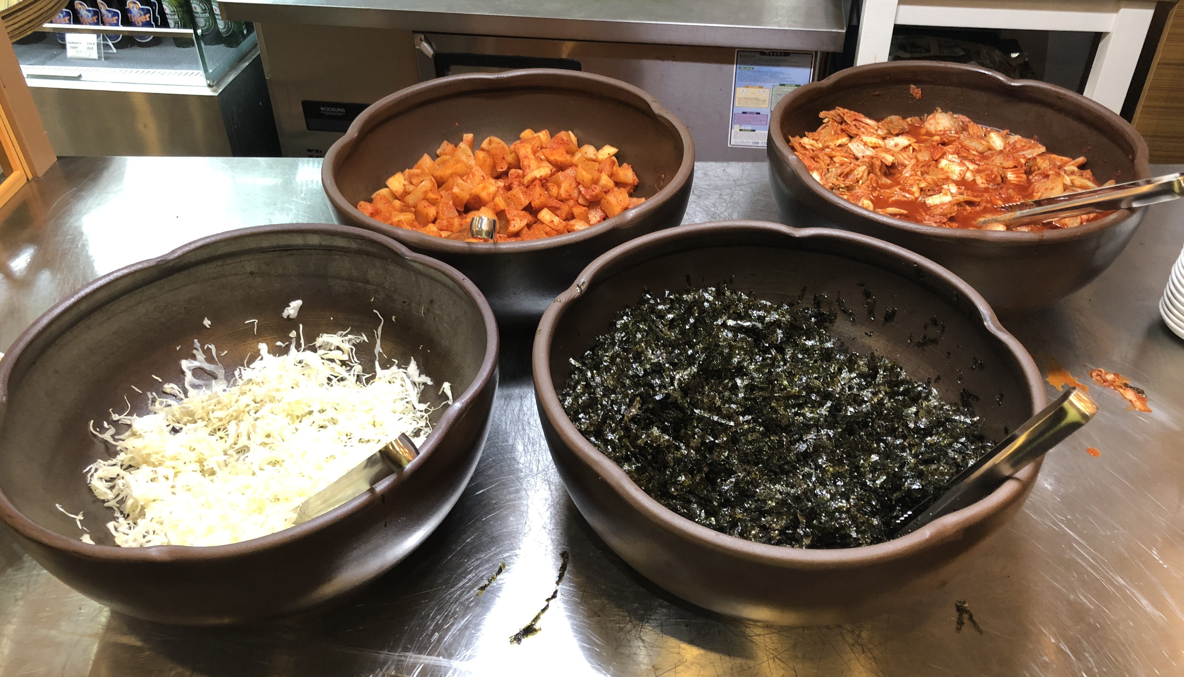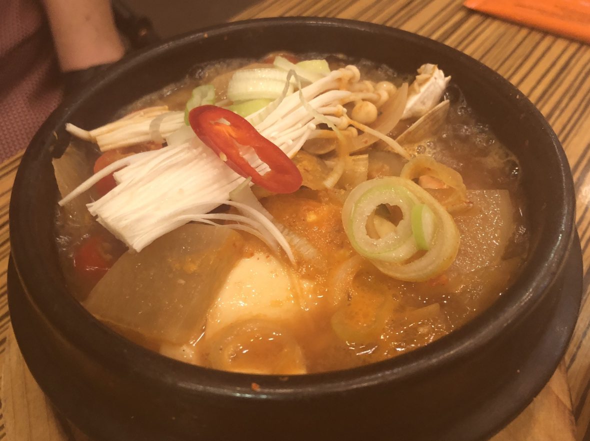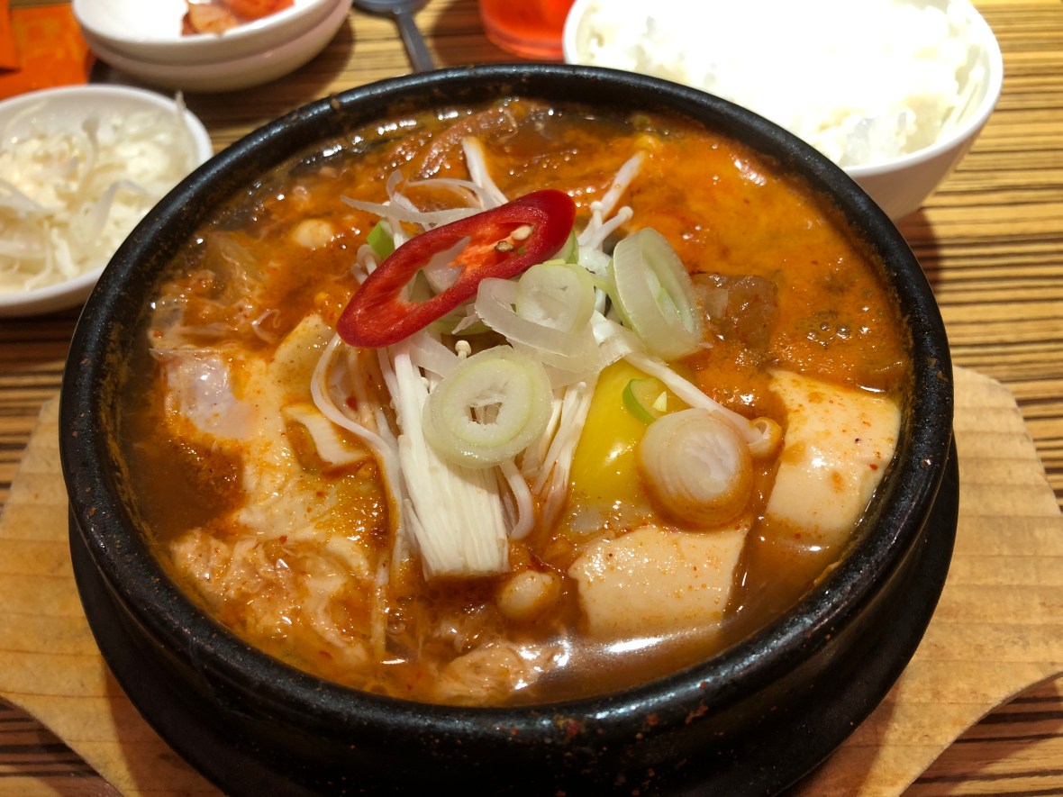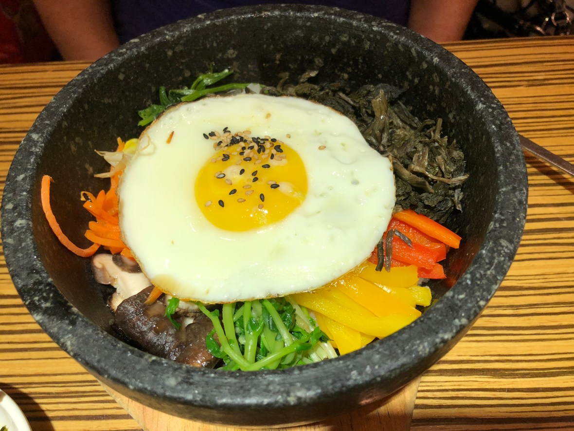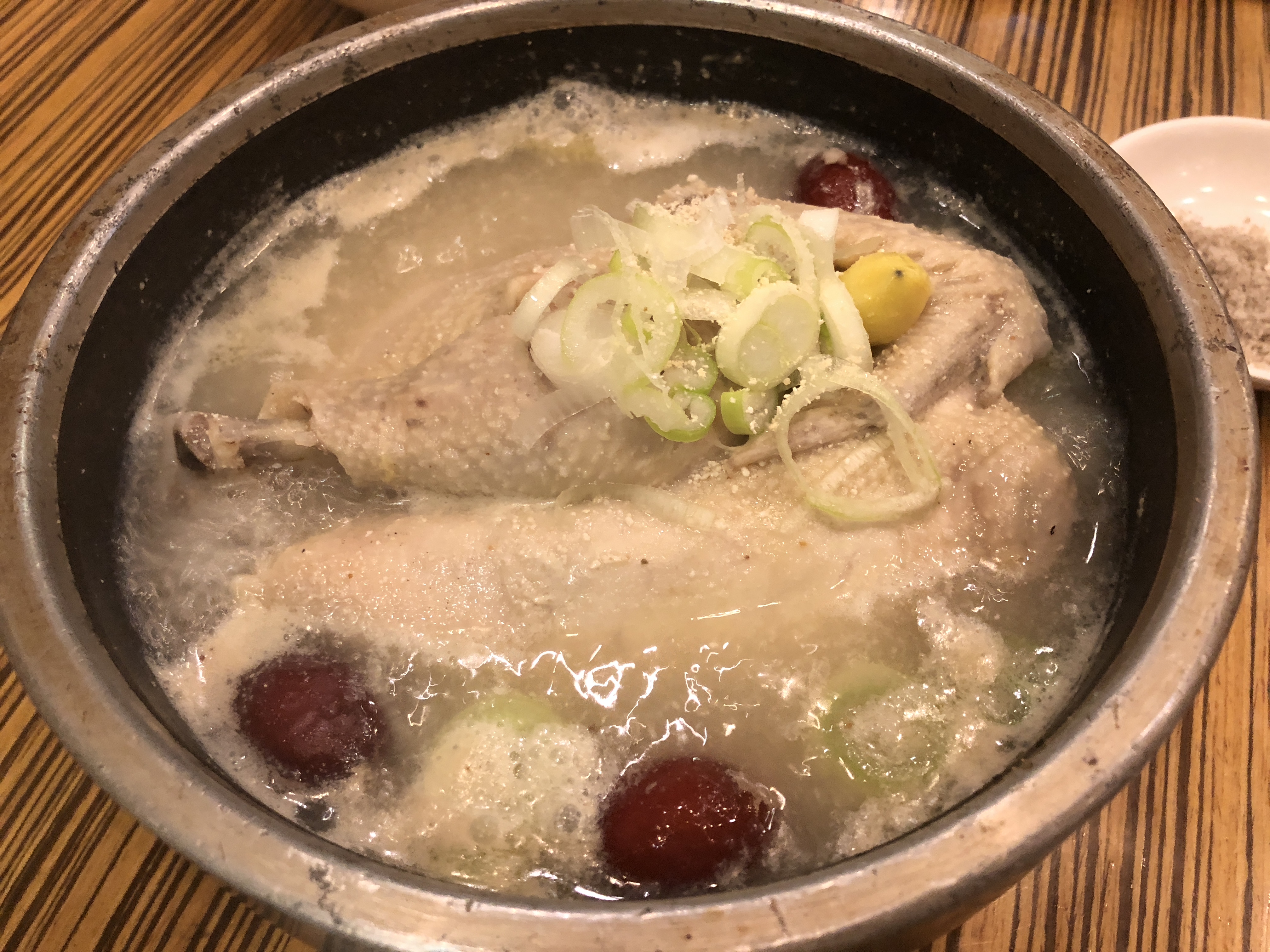 They have unlimited Banchan that you take yourself. We started with the Seafood Pancake.  A little doughy, not crispy enough. Some Bibimbap.Ginseng Chicken Soup. This one was not so traditional as it was not stuffed with rice. Seafood Soup.And Sundubu, which was quite nice. It followed with some Mochi for dessert.Uneventful and there are a lot of better Korean restaurants out there.  But for those that want a simple Korean meal, it works.