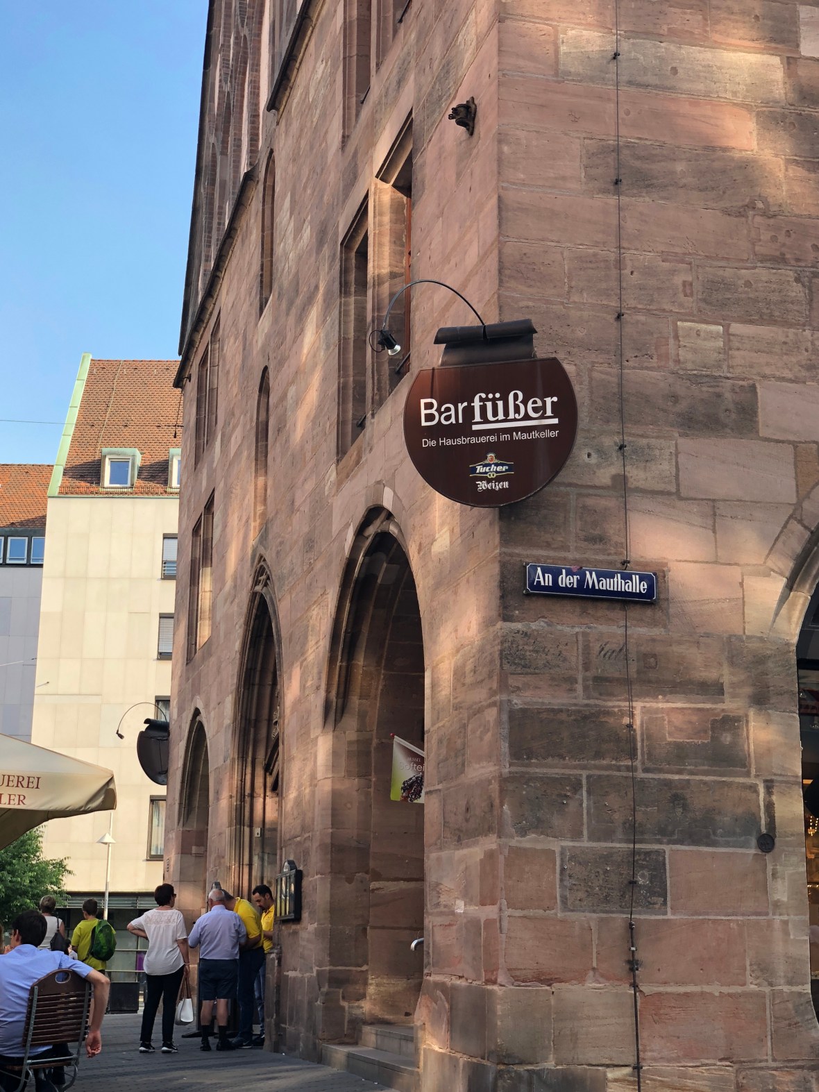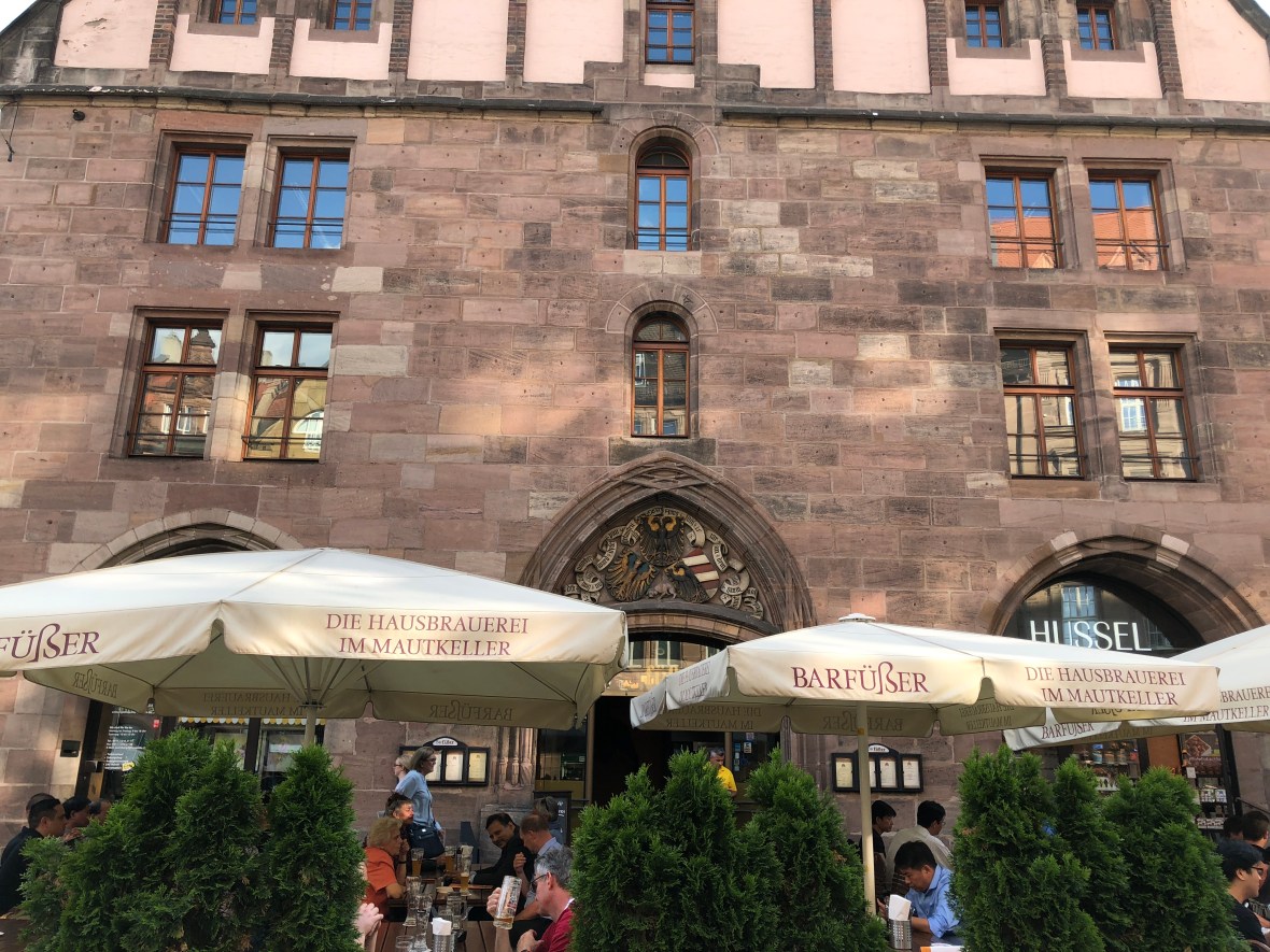 Located right on the main pedestrian walking mall headed into the heart of Nuremberg is Barfüßer.  It’s located in the basement of this old building.