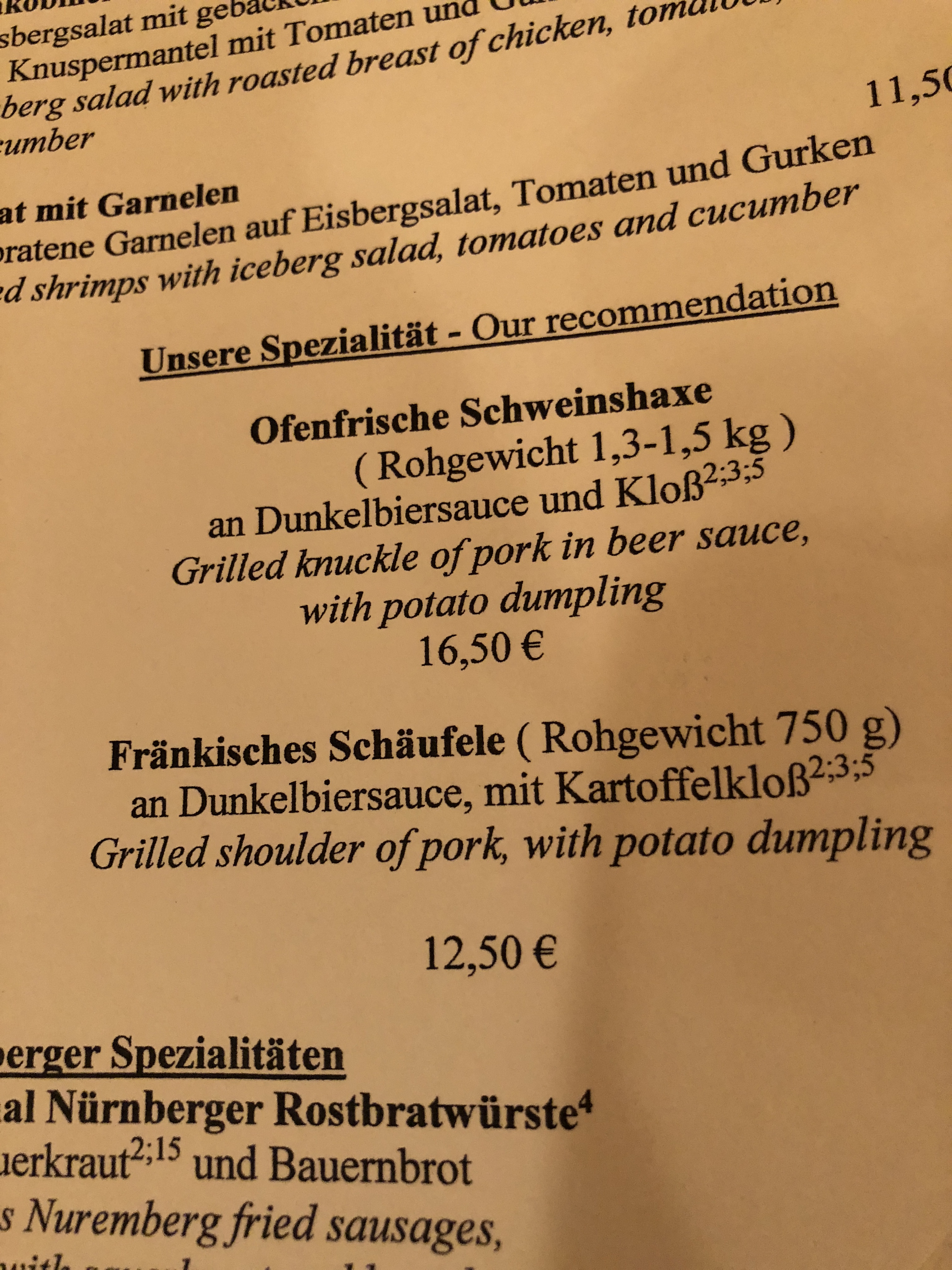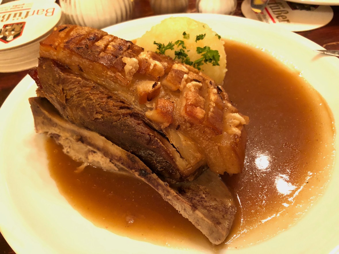 Let’s face it, Germany brewhouses are all about the beer. And of course when you’re in this area of Bavaria, you must have the Schäufele, or Roasted Pork Shoulder. Done right, it’s crispy on the top, tender on the meat and smothered with a nice beer sauce.  This one is no different.  Just awesome, tender and crispy.  Love it.