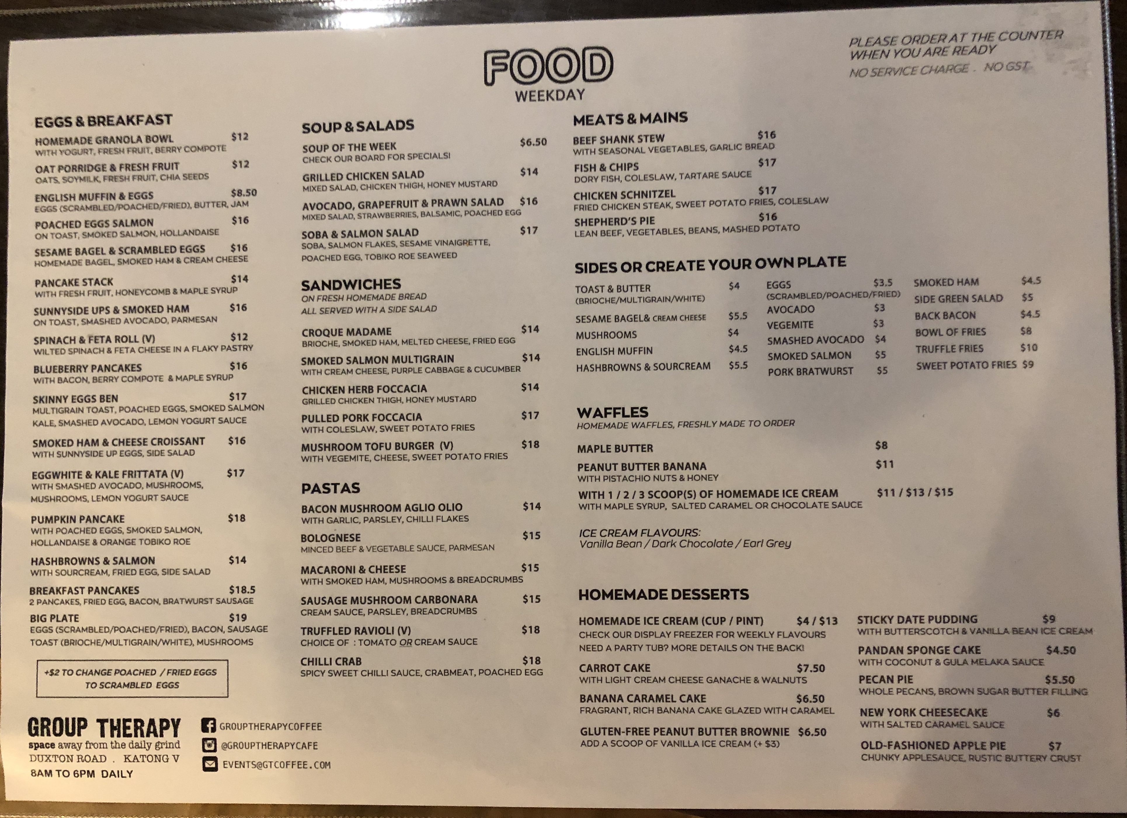 Brunch for the start of a special day! Let’s start out with coffee and a nice breakfast at Group Therapy!  It’s at Katong V, sort of hidden from everything.