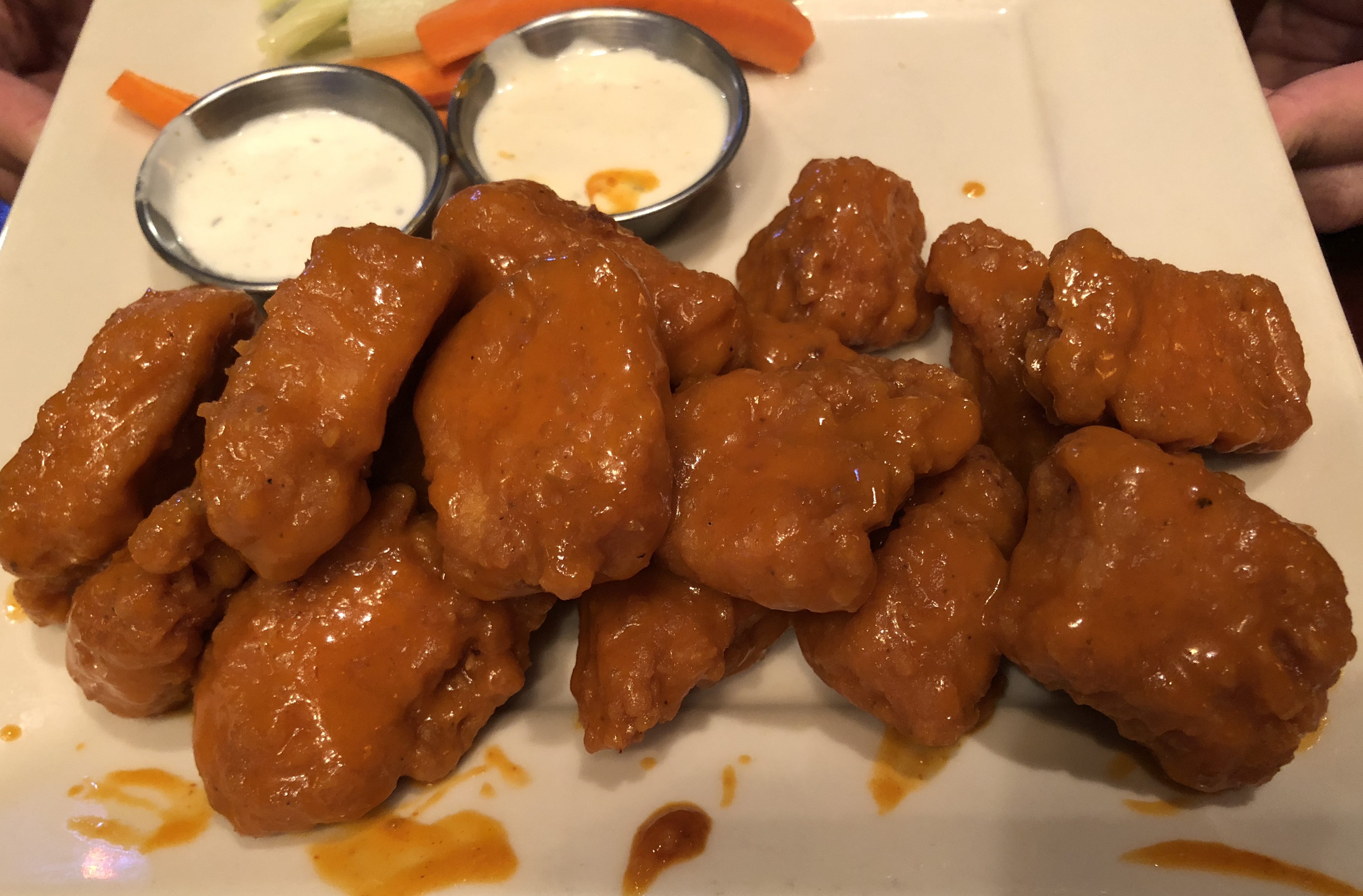 The atmosphere is your typical American brewpub/sports bar. We started our with some Buffalo Nuggets.  I really do miss Buffalo Wing Sauce living in Singapore.  This brought me back.  Not exceptional, but it does the job. Then I went for the heart attack special.  A Flaming Ribeye, which is with Jalapeno Butter and Pepper, Mac and Cheese and Onion Rings.  Fat. Die. Me.Typical American fare.  I do miss it.