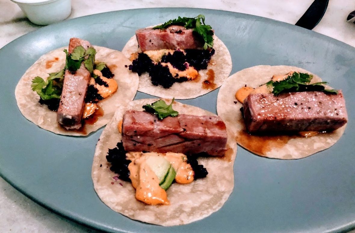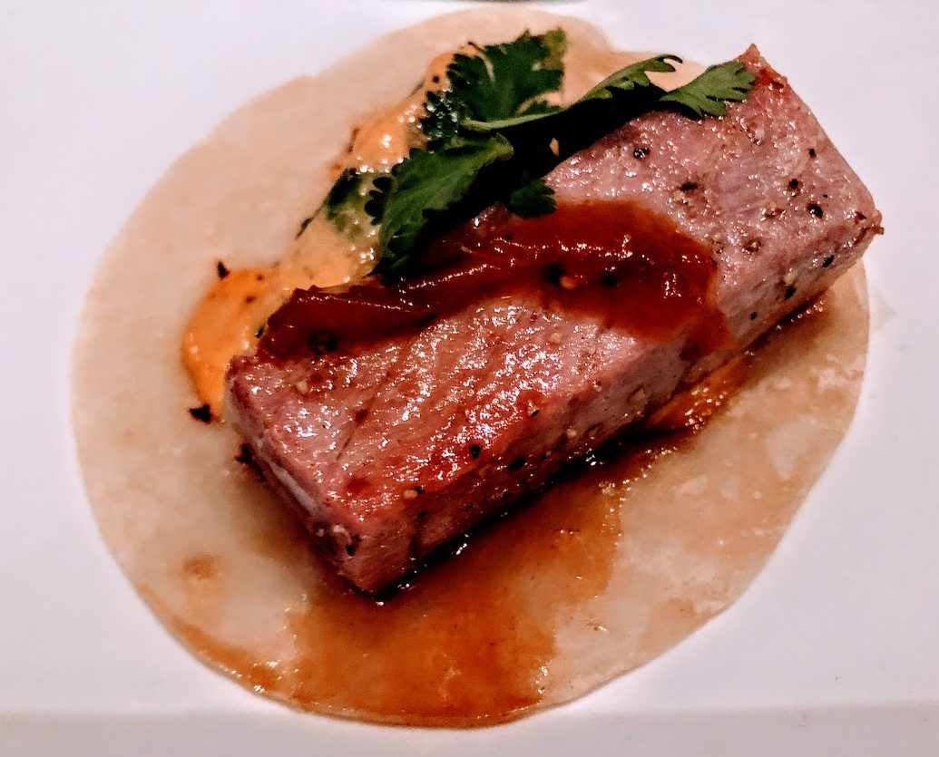 On to the food! We of course need to start with Tacos. This is the Tuna Taco. Seared Ahi done very nicely!