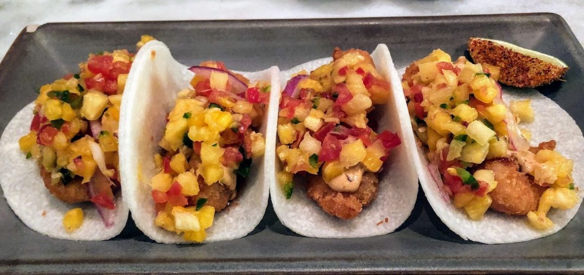 Tropical Taco – Fried Prawns with Corn, Pineapple Salsa. It was actually cold, so it was different!