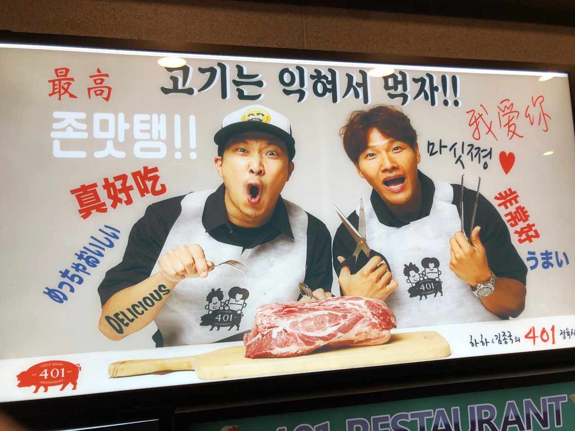 Korean BBQ! We tried this place because of recommendations and it’s famous because it is owned by Ha Ha of Running Man fame. It’s up on the 8th floor with nice views.