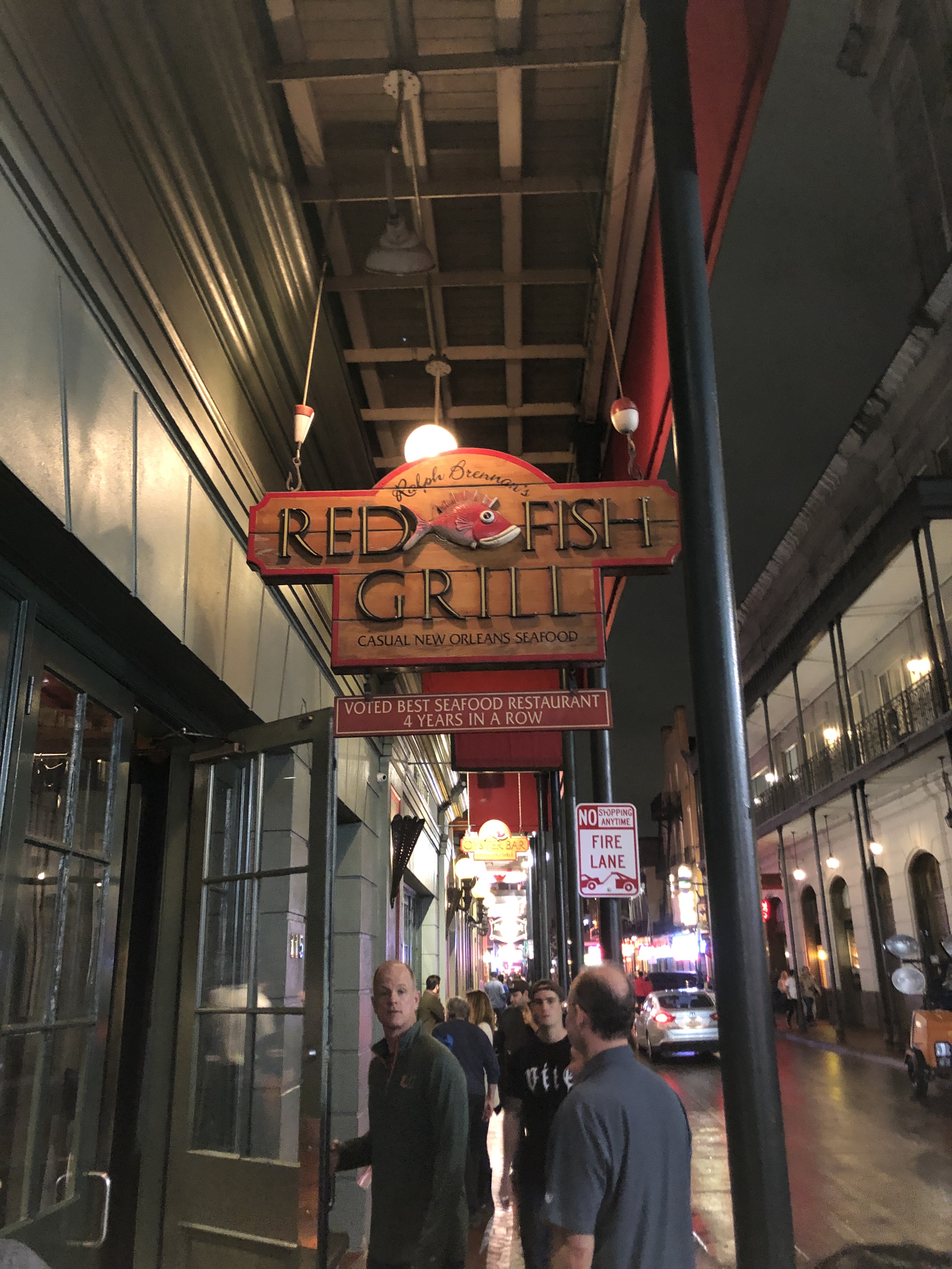 Dinner time and that means Seafood in NOLA.  We chose the Red Fish Grill, right on Bourbon Street.