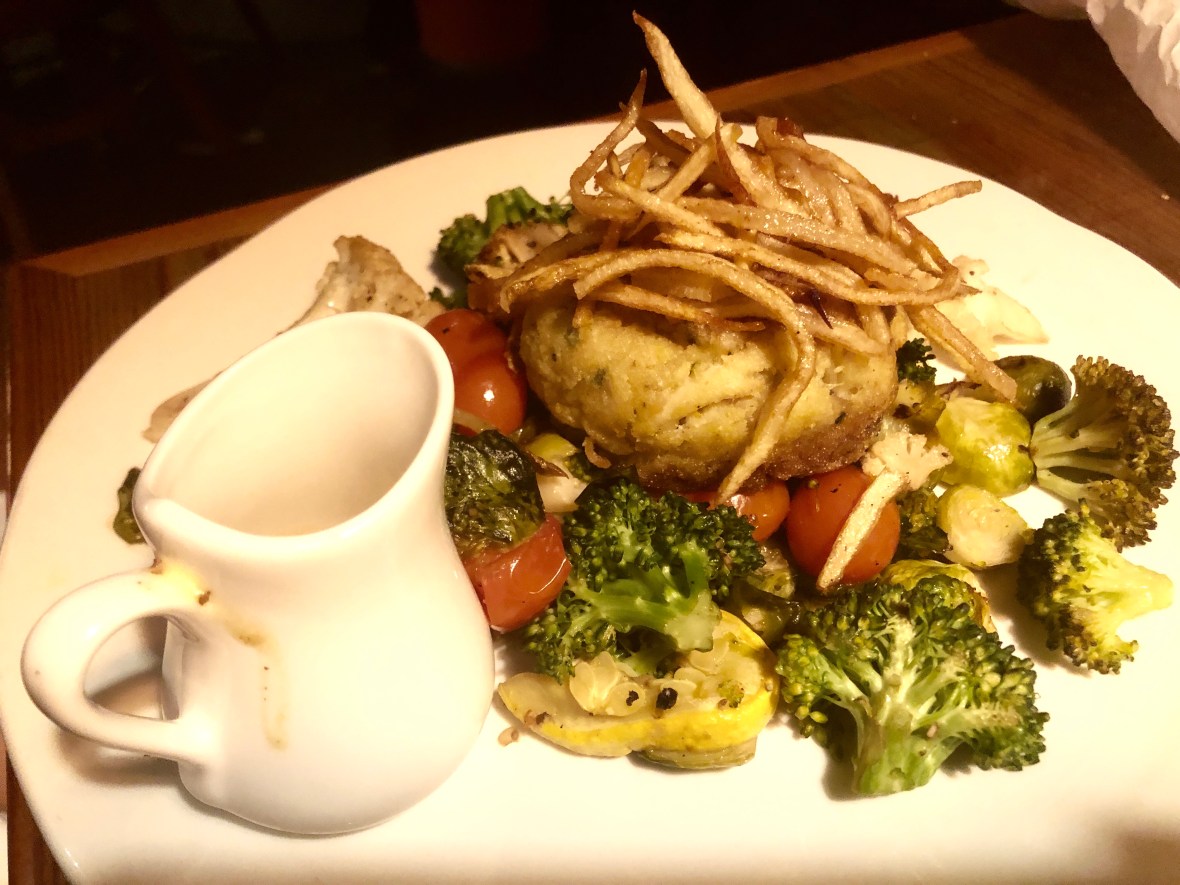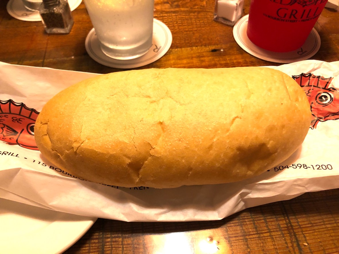 It’s busy inside! A look at the menu Bread is included and packaged differently Raw Oysters – what else in NOLA? BBQ Oysters.  Definitely different, these are more like Buffalo style to be honest A Wedge Salad for our greens! Grilled Mahi Mahi Crab Cake Red Drumfish with Crabmeat on top A Black Drum with Crabmeat on Spinach Some Tasso Fried RiceA nice meal in the French Quarter!