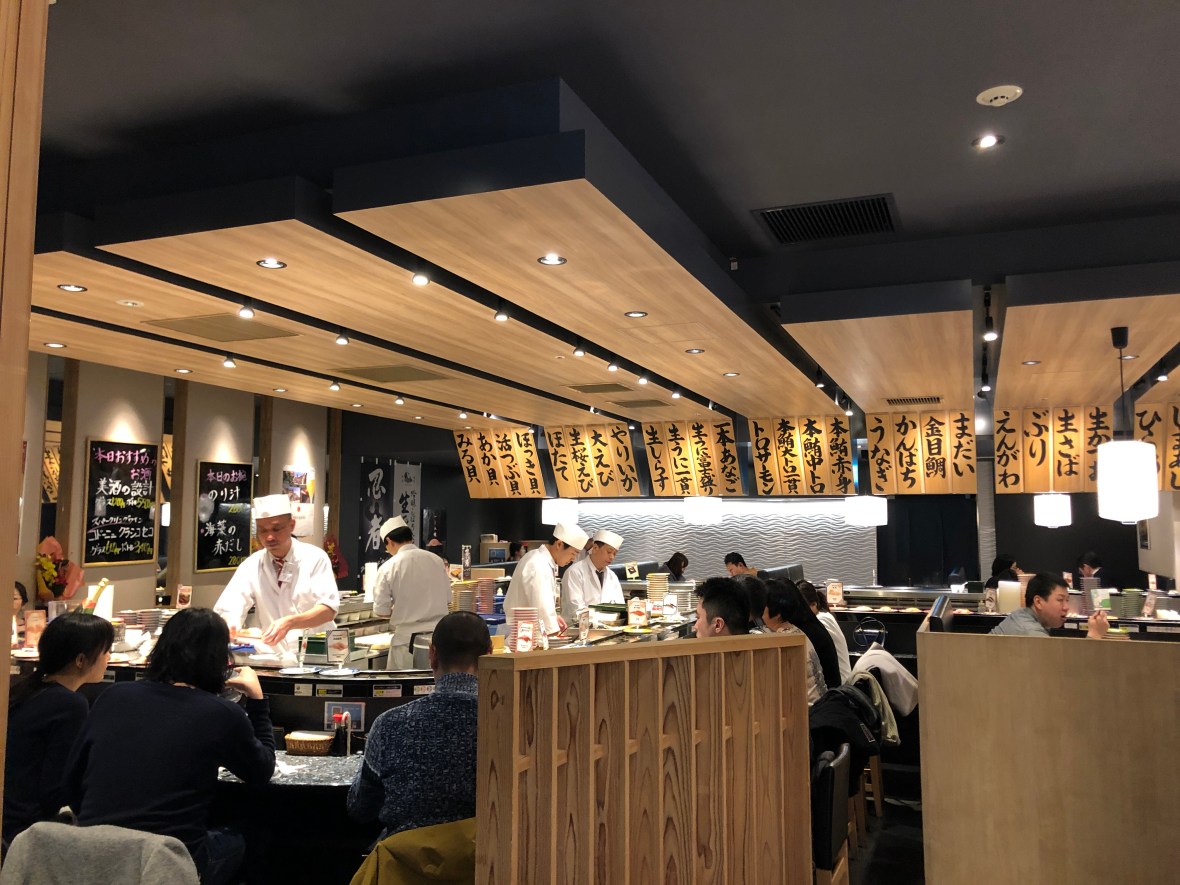 It really doesn’t look like a conveyor sushi place though… Until you see the conveyor. There is the conveyor, which gets replenished every now and then, and you can order from the menu. Let’s go!