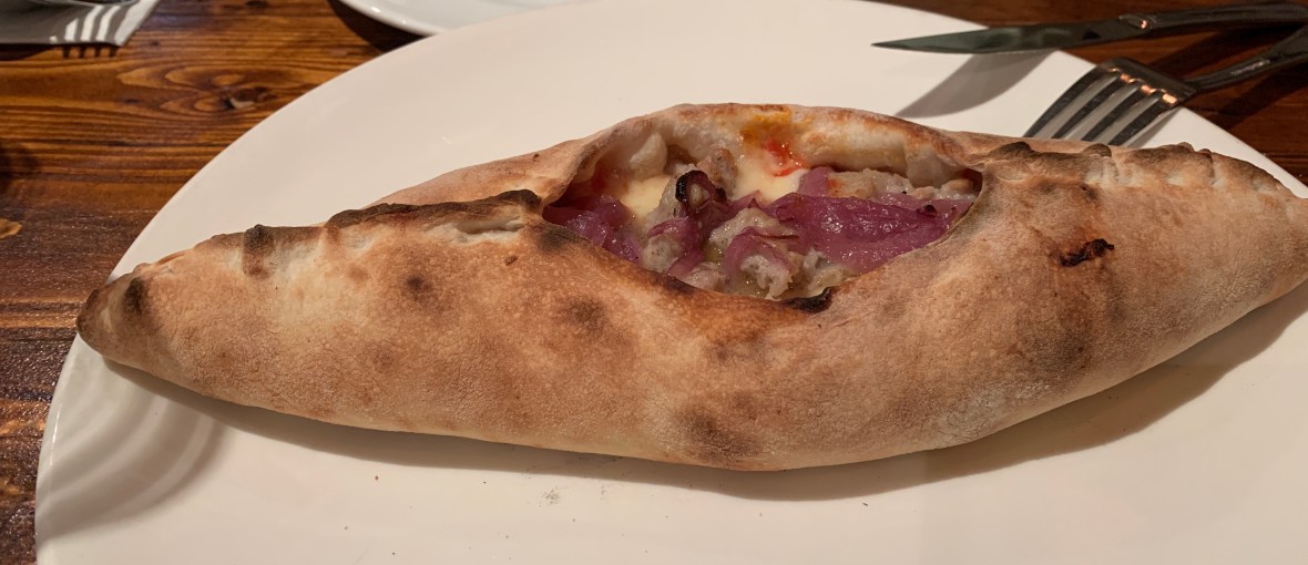 We started off with a “Pizza Boat”, or what I know as Garbage Bread. Nicely done.