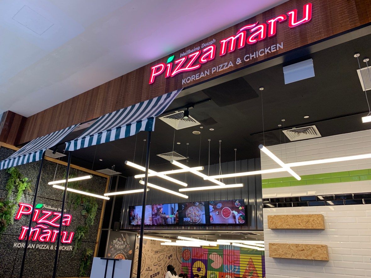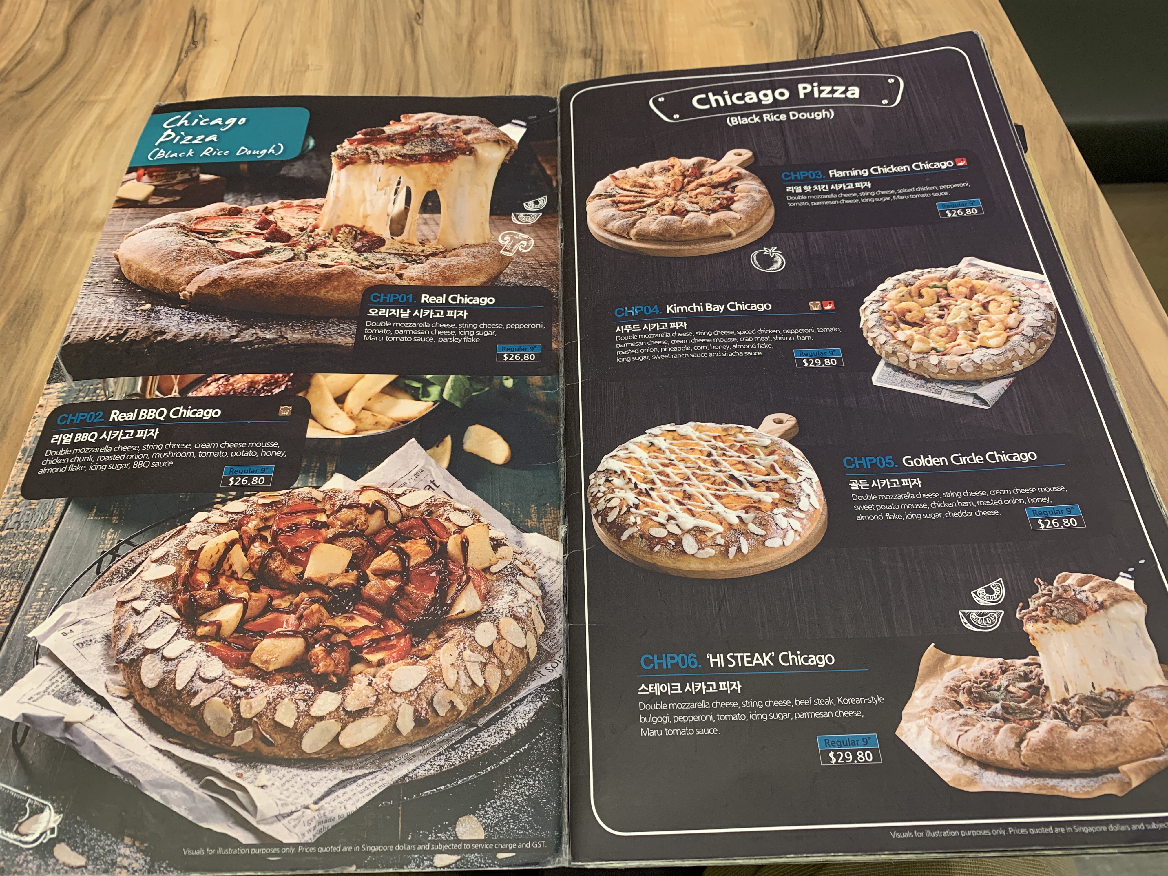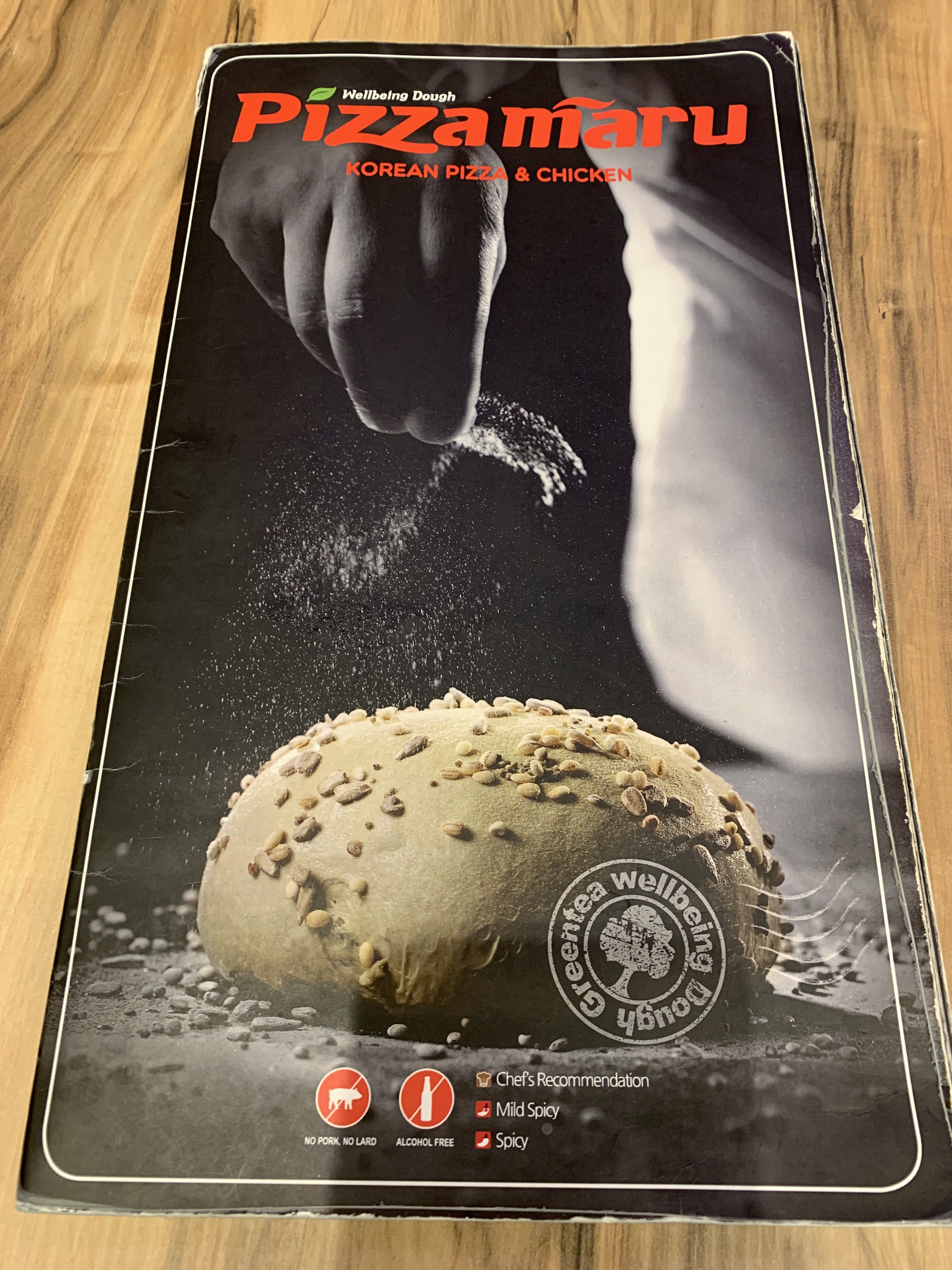 Tried out “Korean-style” Pizza for the first time. Pizza Maru says it’s the style from Korea. Complete with special grain dough and the way it’s eaten there. Let’s see.
