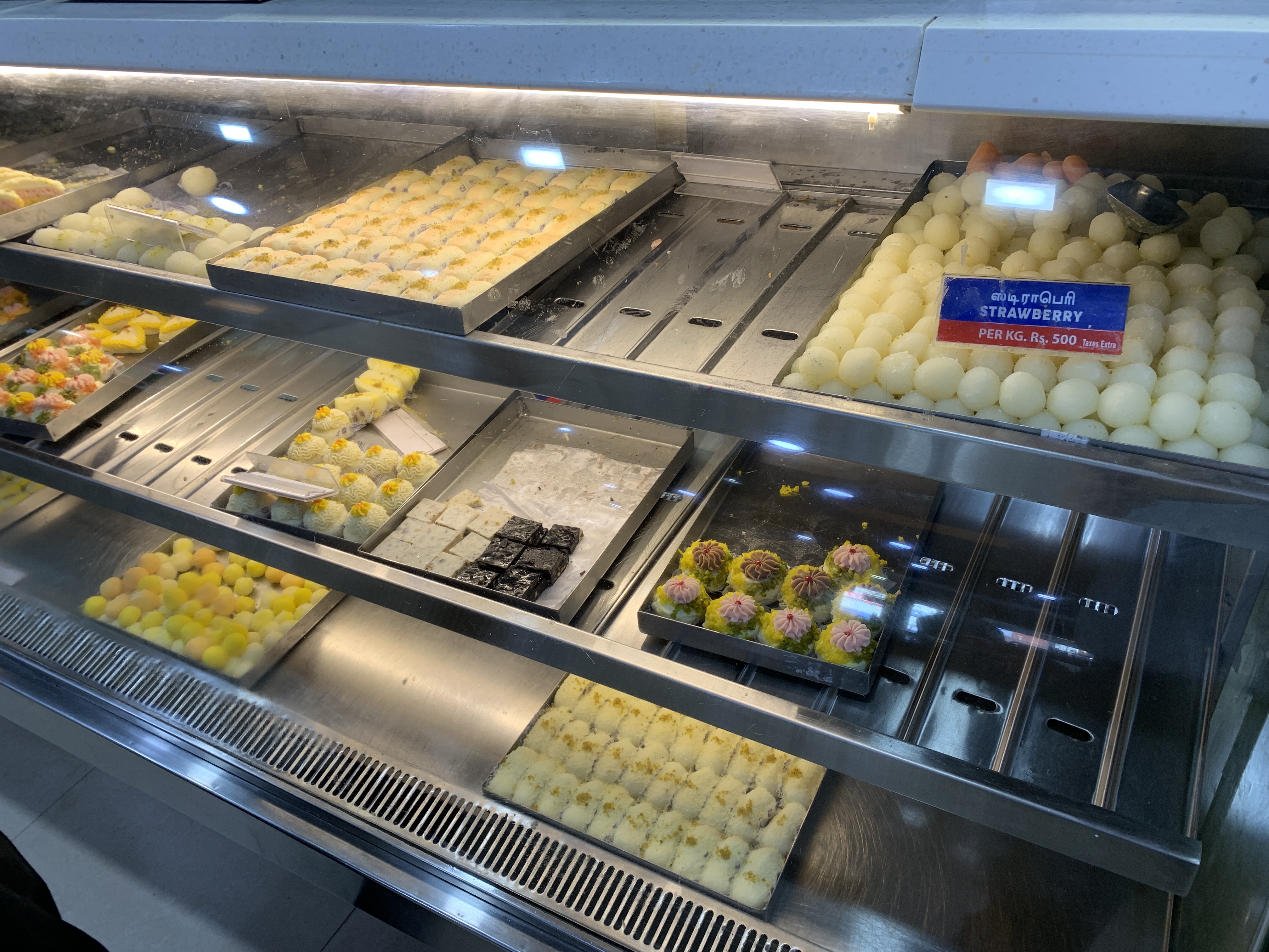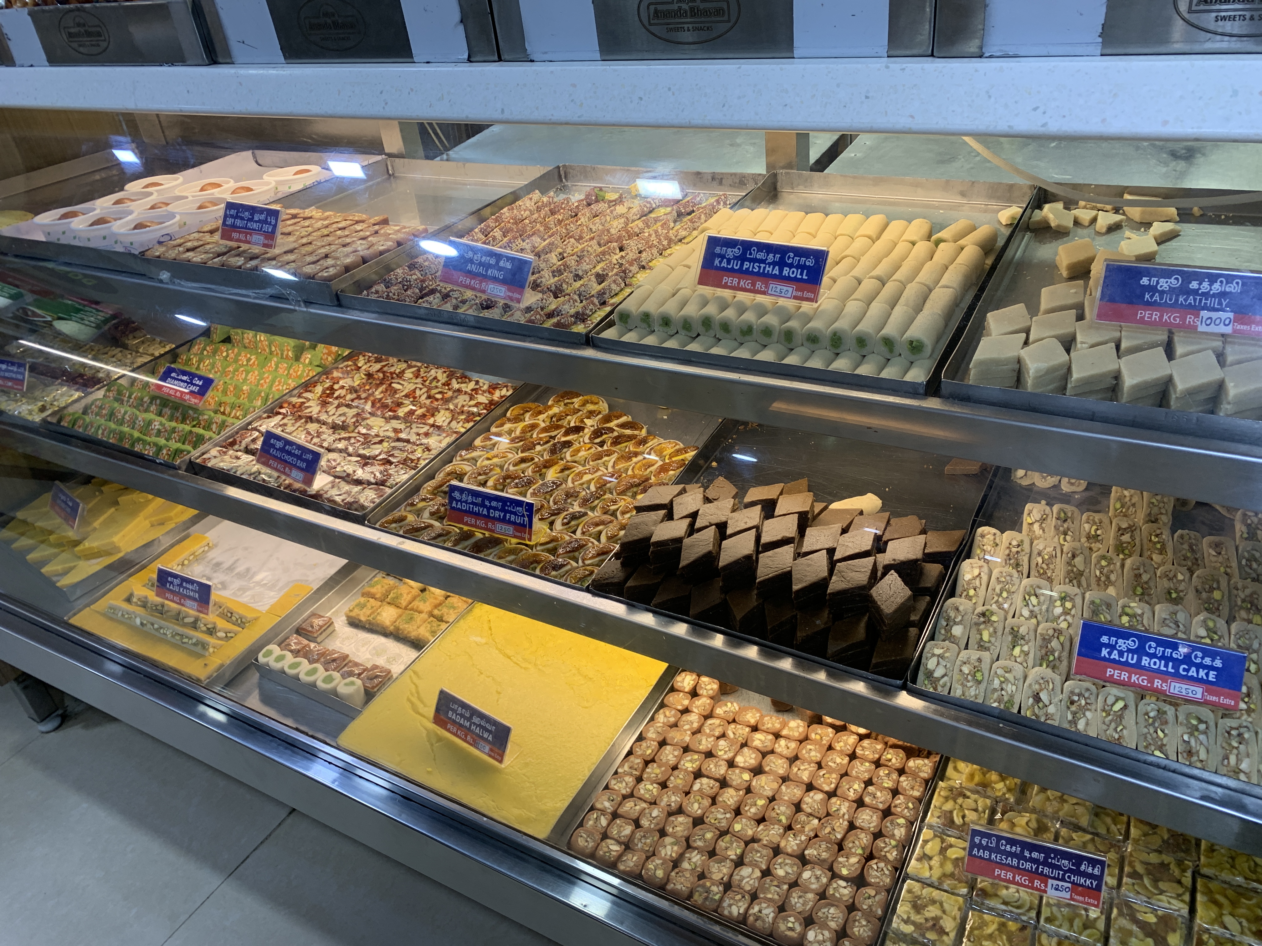After seeing the dizzying variety of choices we settled on Cashew and Pistachio Sweets (Kaju Pistha) with Indian Pulled Coffee.