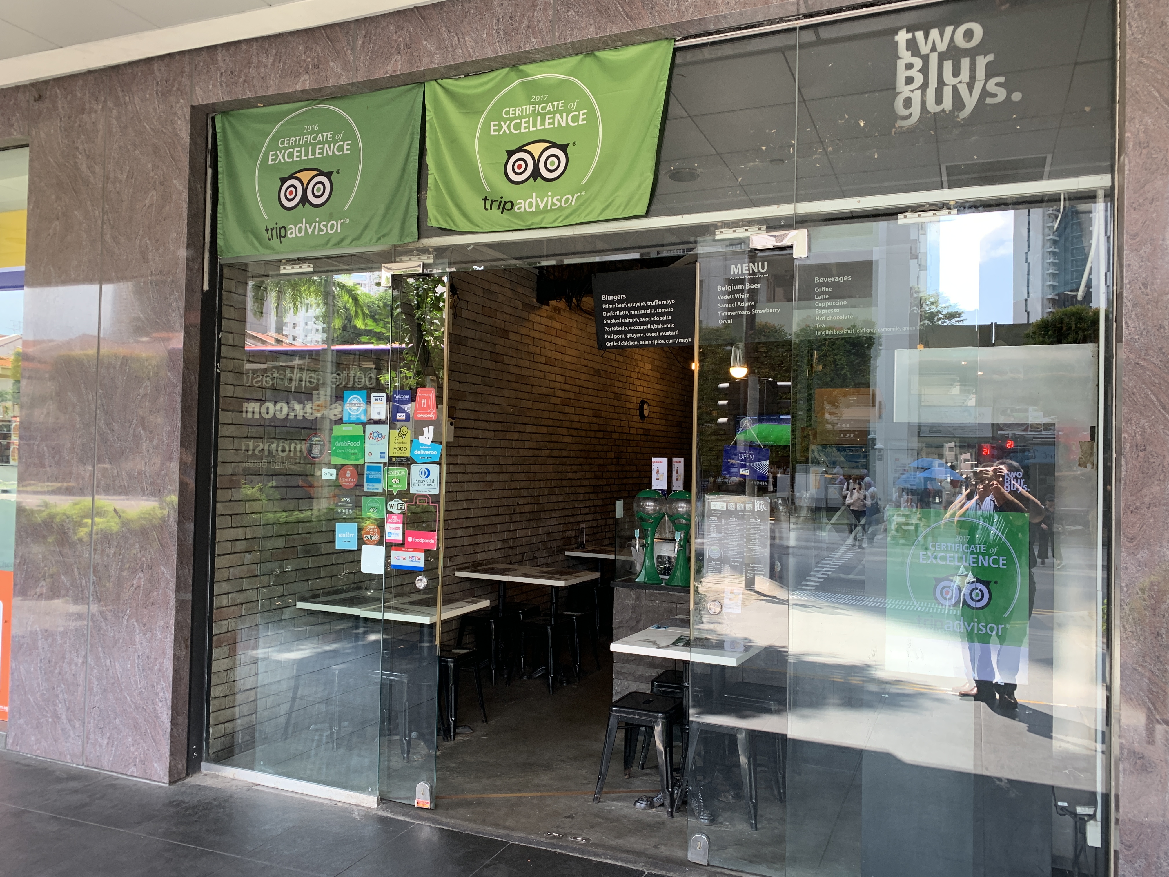 As  you know, I continue to hunt two things in Singapore – good Pizza and good Burgers.  It is Burgers this time and I thought I would check out Two Blur Guys. I went a little late, so there was no one there.  So it was quite quiet and one of the staff was more interested in a football match on his handphone than helping his partner serve me, but hey, it must have been a busy lunch hour.