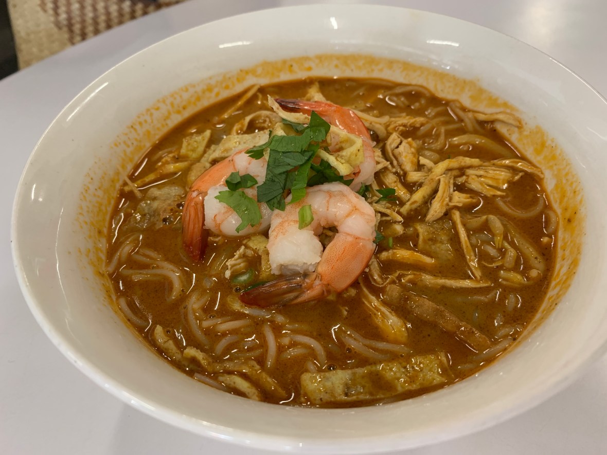 Sarawak Laksa – Curry flavored and definitely different than Penang or Singapore or Katong style. Kolo Mee.  Springy noodles in a dry version.Sawarak breakfast!