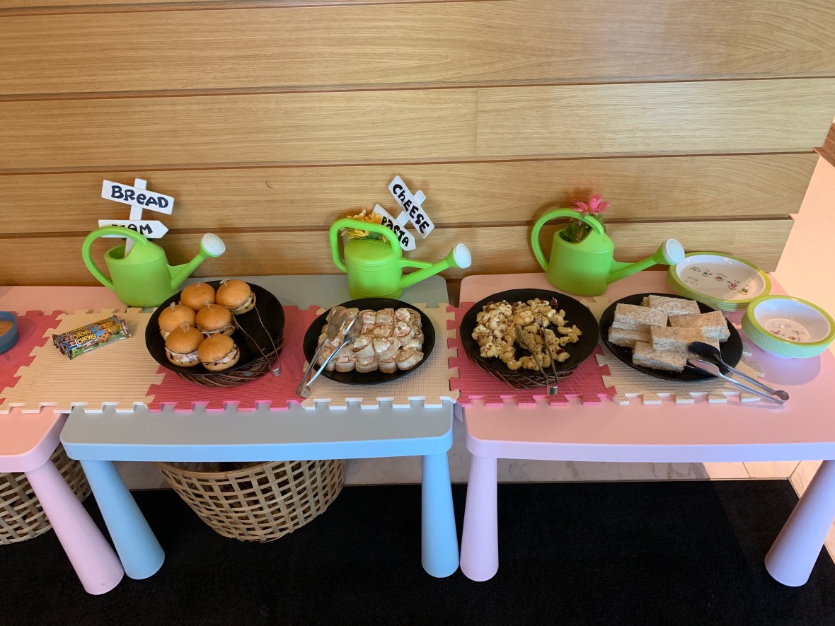 Add in other favorites, a noodle bar and dessert bar – you can’t go wrong.
