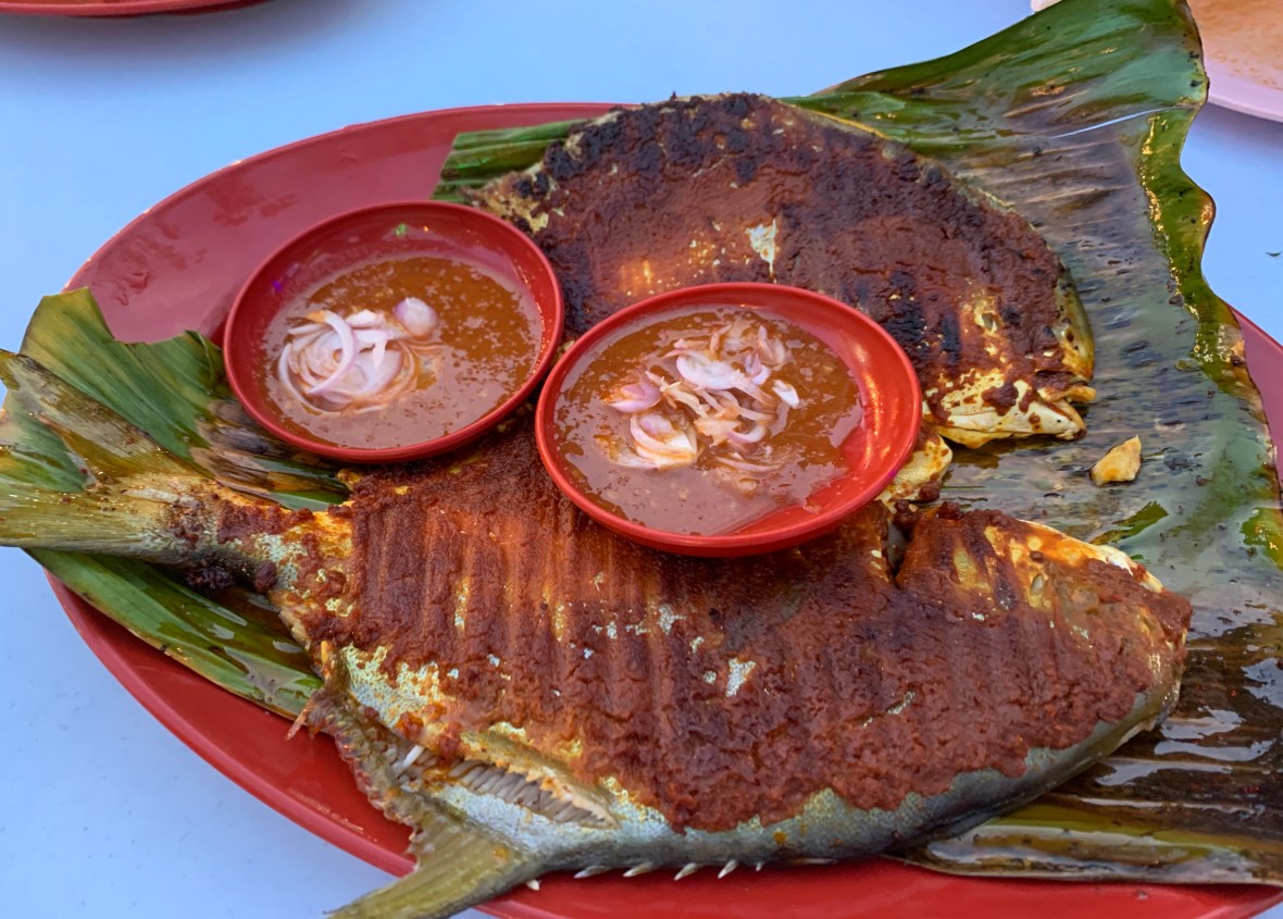 Grab some Ampula/Ambra Juice and enjoy! We start at a great BBQ place, choose what you want and they will grill it for you. Grilled Sambal Pomfret Roasted Brinjal Sweet Chili La La Grilled Chicken Wing And of course you have to add on – Penang Char Kway Teow Simple life, great food.