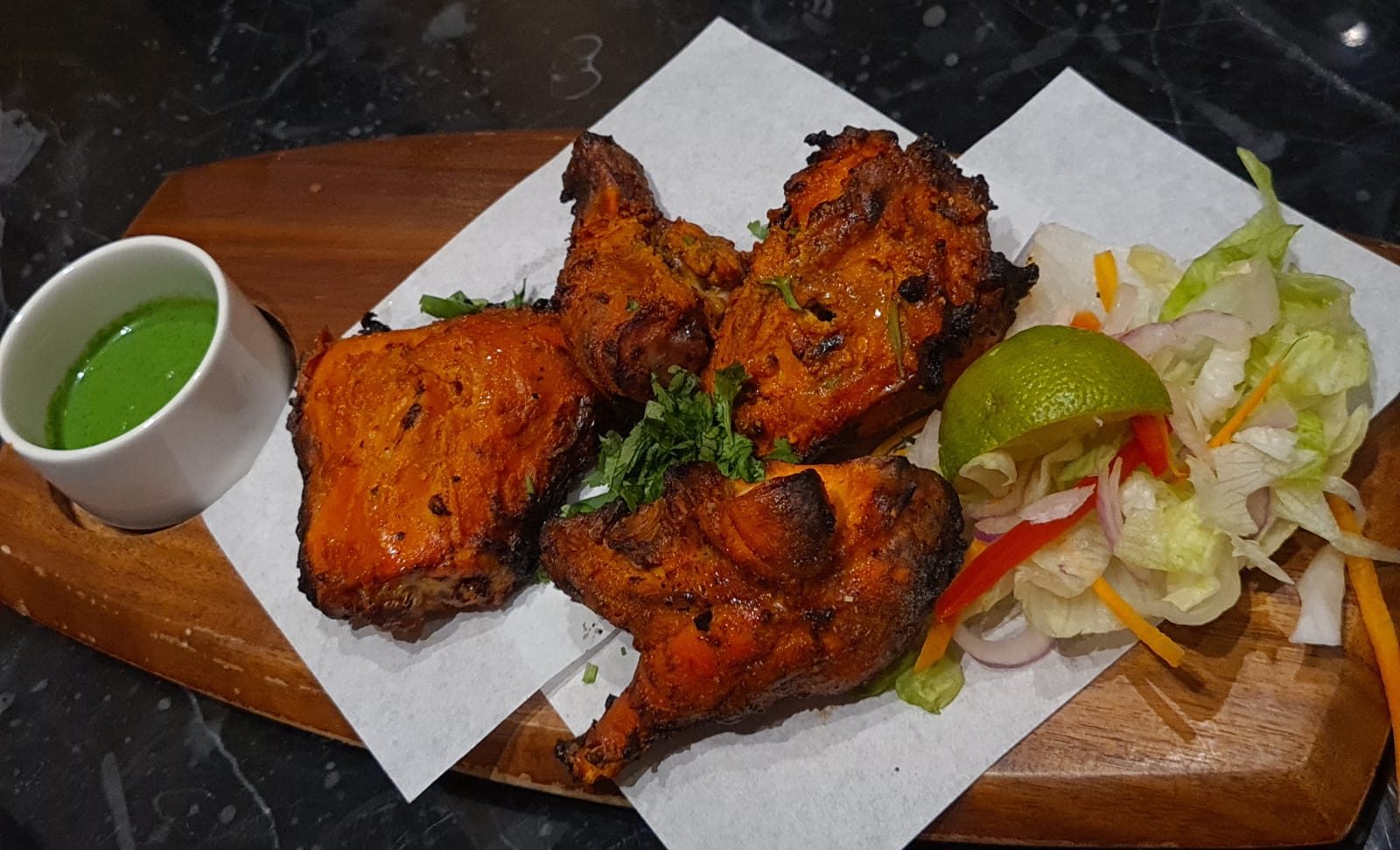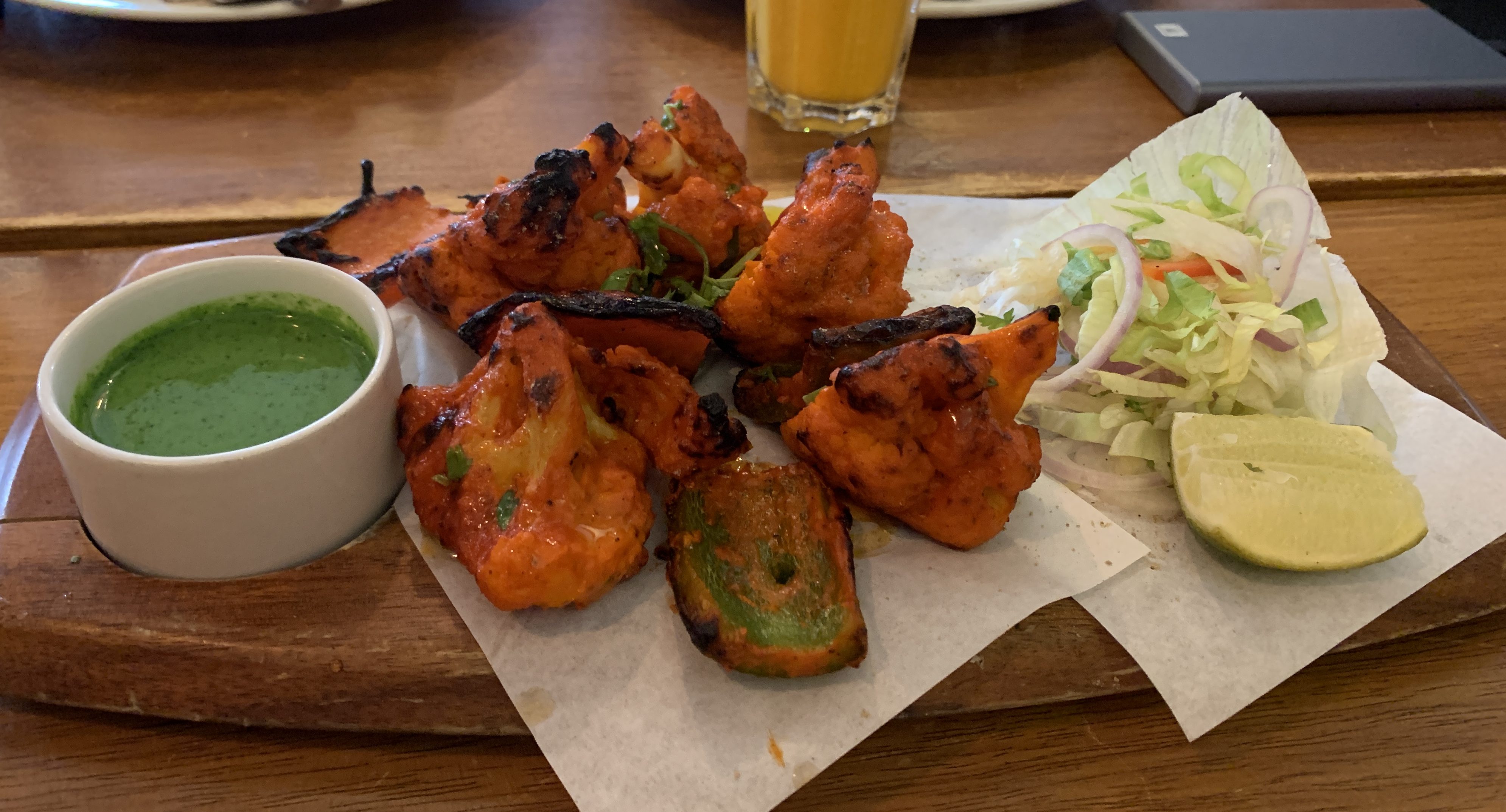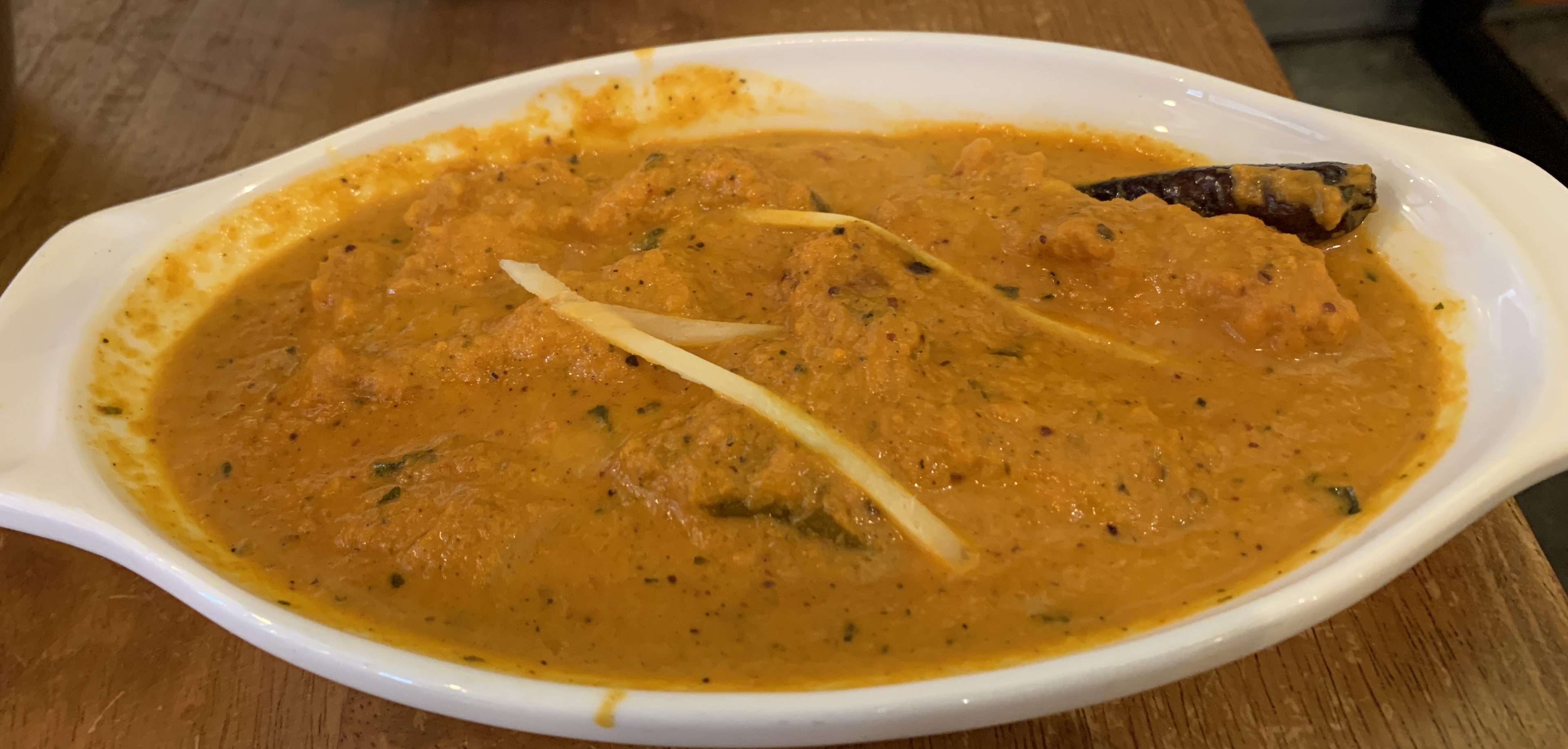 Goan Fish Curry is light and the coconut comes through. Masala Fish Curry is a little different, but still quite nice. And Tandoor Cauliflower is a nice compliment along with Tandoori Chicken.