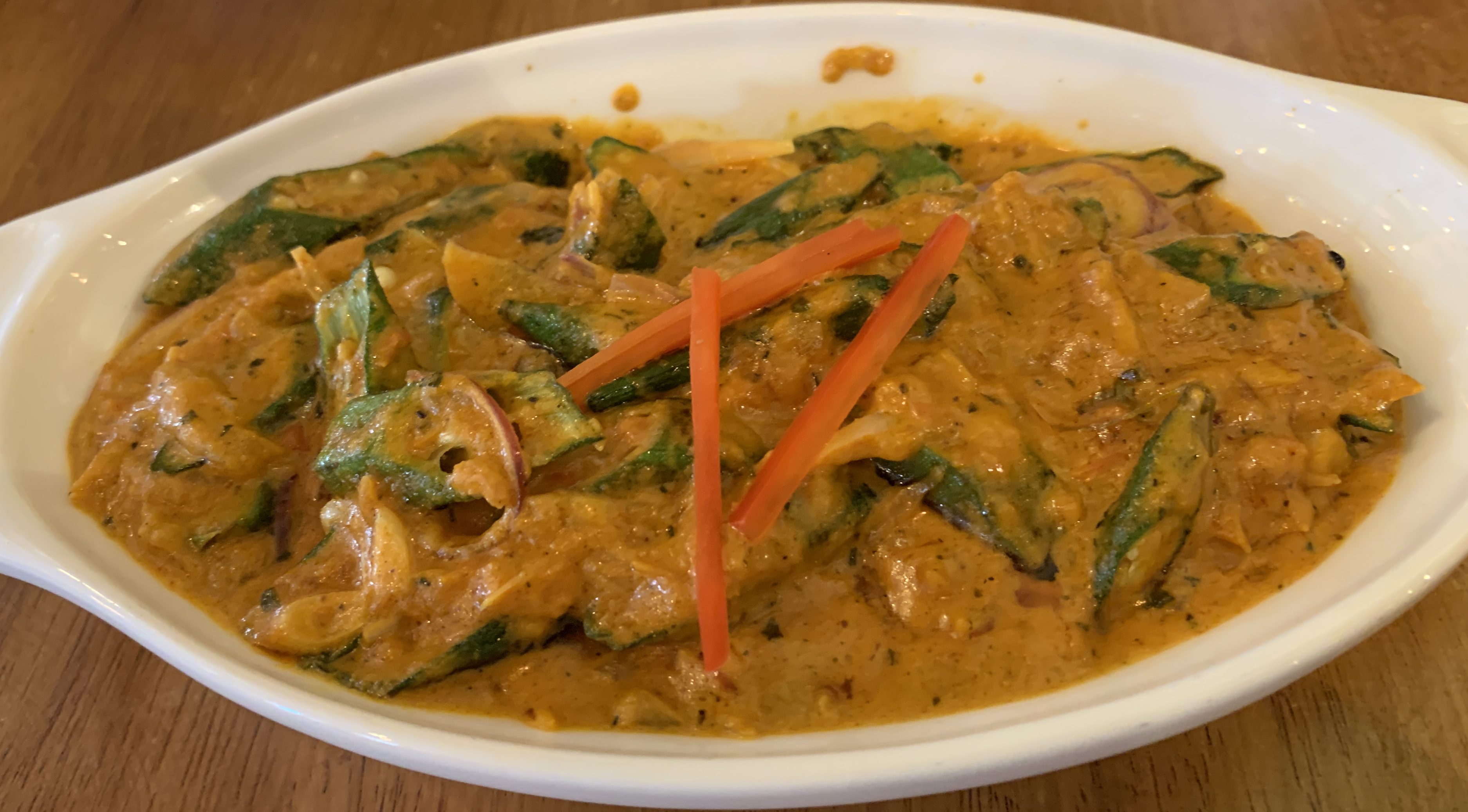 We actually received someone else’s order at first, and it still looked good! Bhindi Masala, Potato Curry and Chapati.