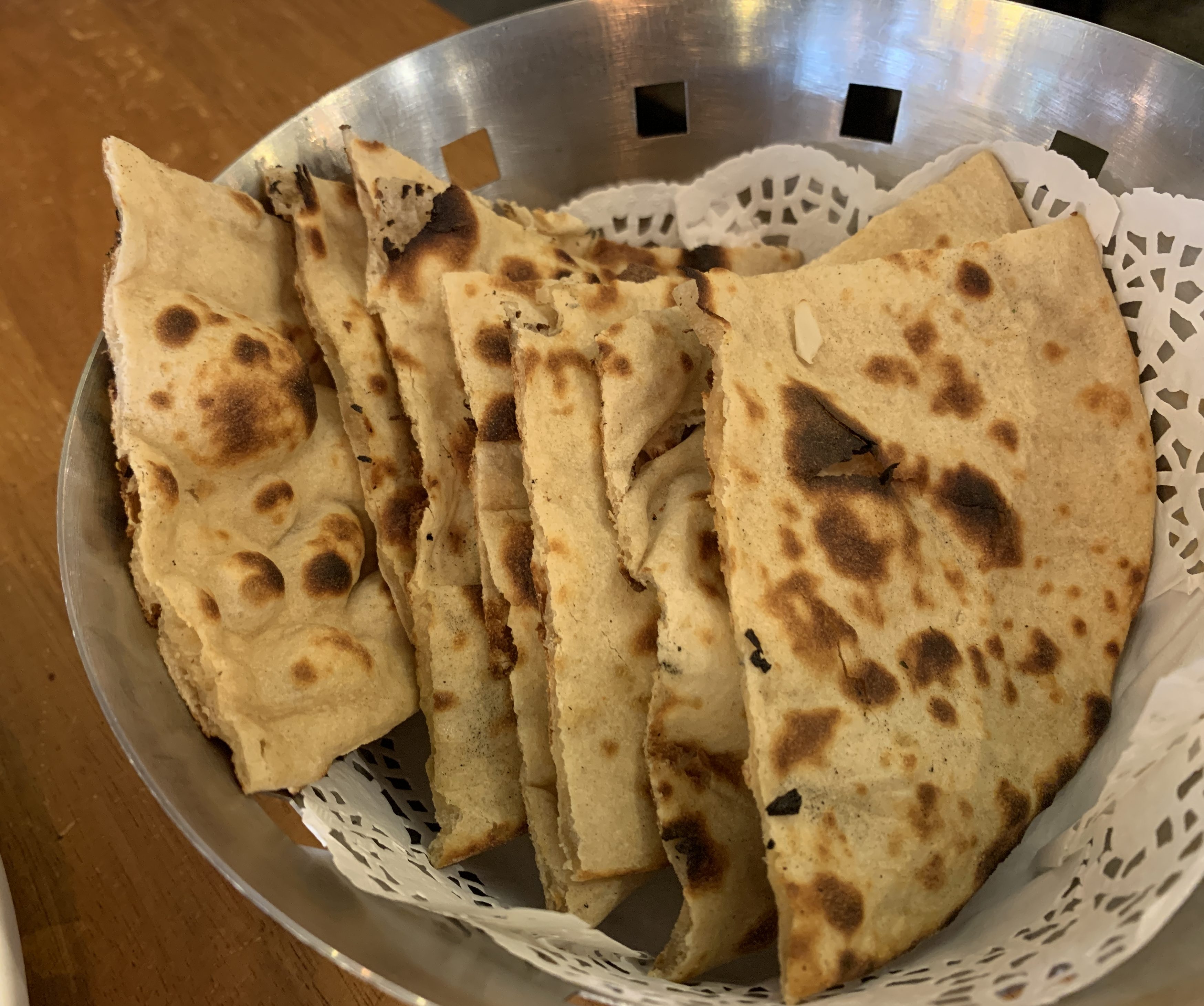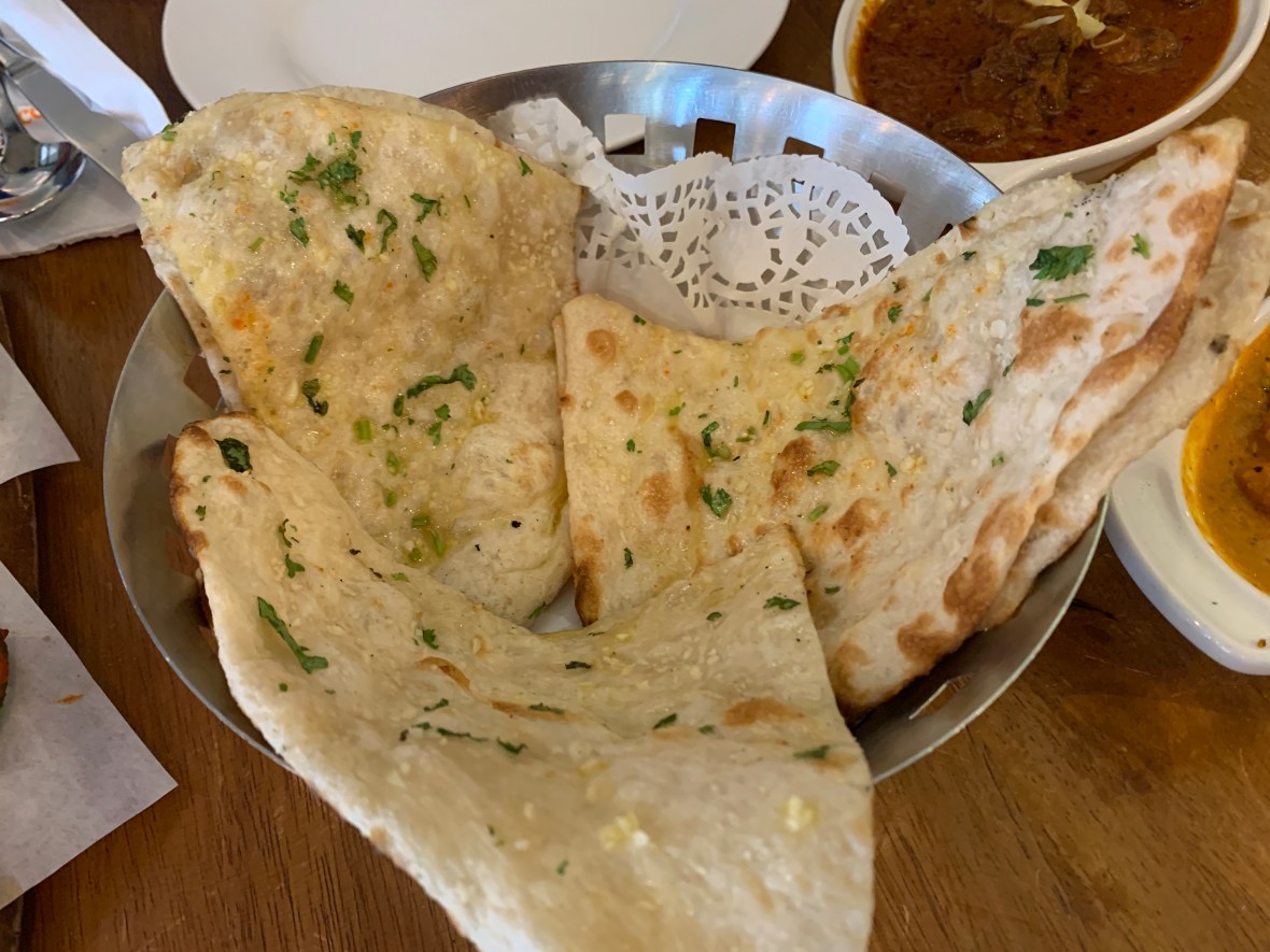 Garlic Naan is a must, as is Lamb Rogan Josh. Both are fragrant, Naan soft and delightful, Mutton tender and melting.