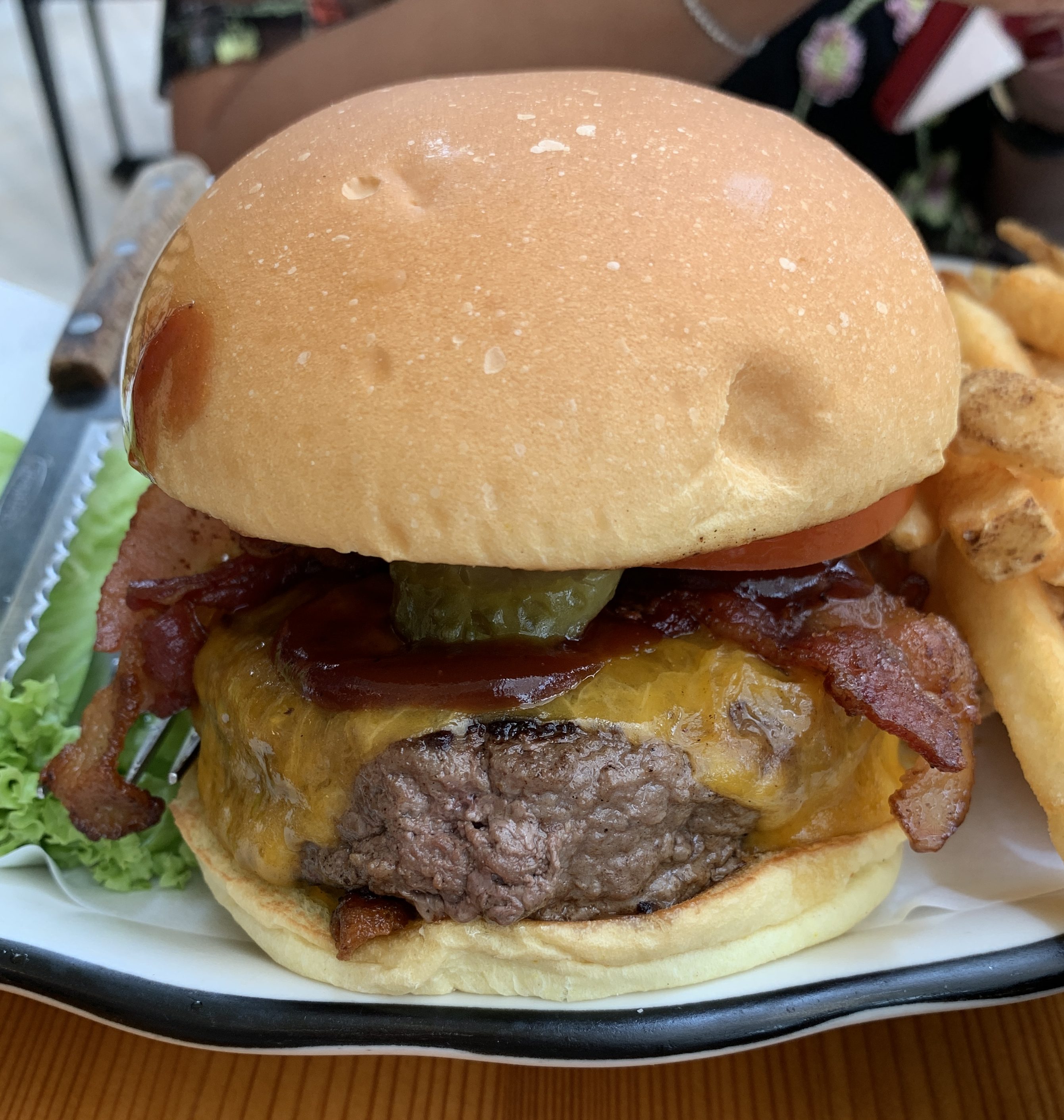 A Texan Burger, with BBQ Sauce, Bacon and an Onion Ring, another of my favorite combos.