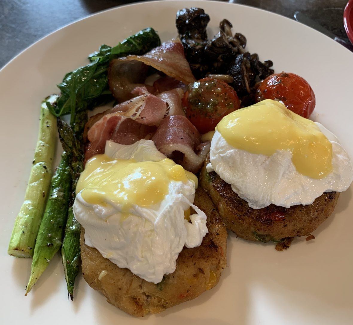 Crab Benedict was not bad with Crab Cakes instead of English Muffins. It could have used some more bread product (muffin, toast, etc) of some sort aside from what was mixed in the Crab Cake.