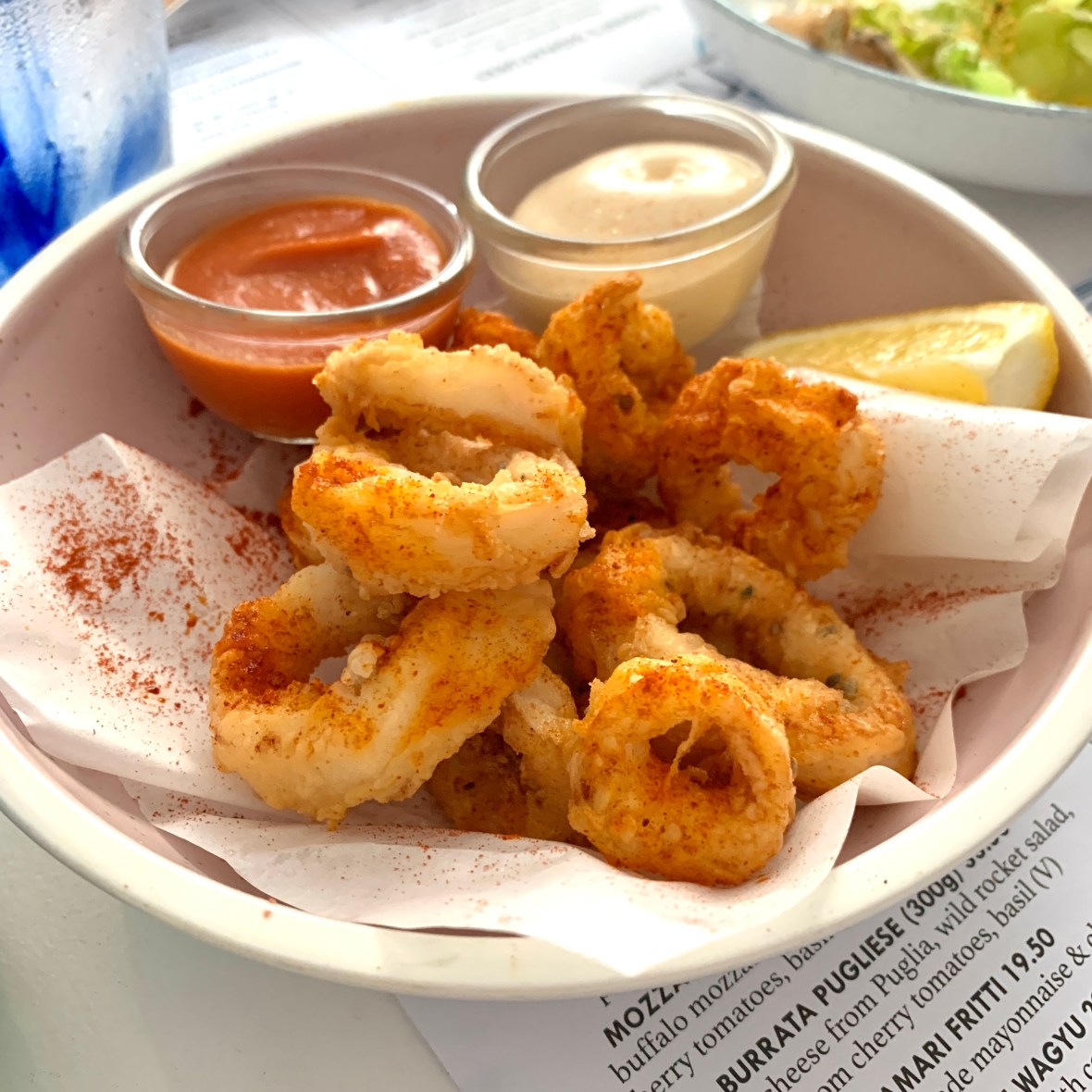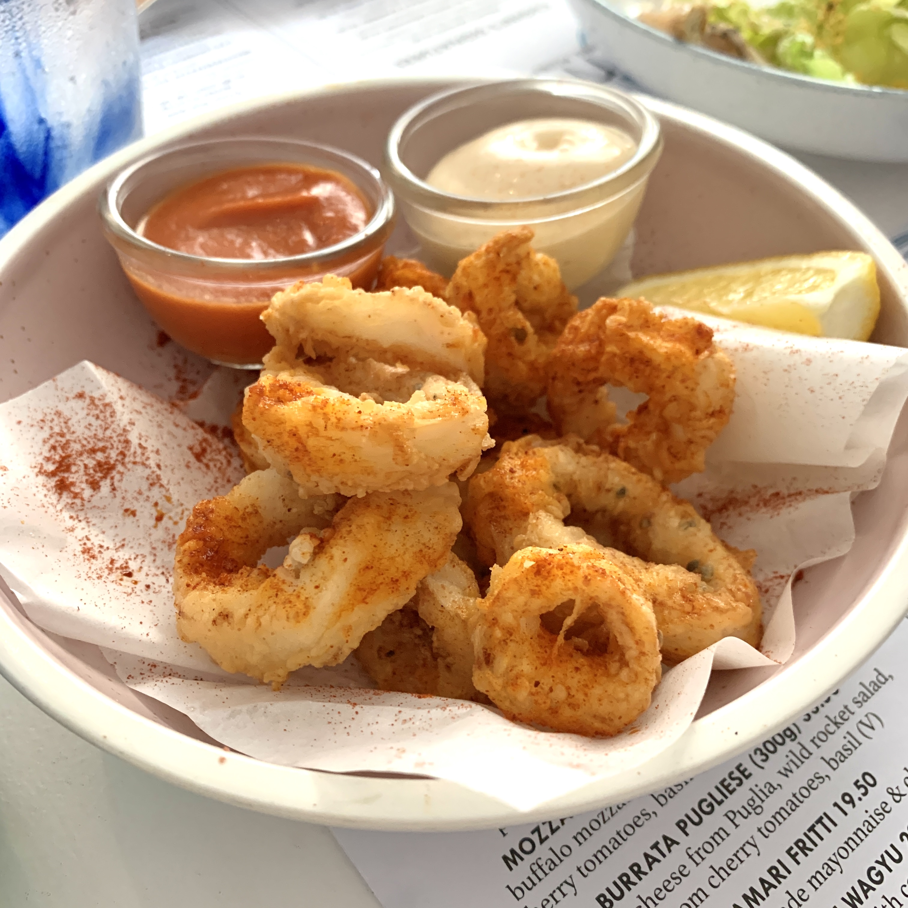 Appetizers of Parma Ham with Melon, Burrata Salad, Antipasti Board and Calamari were also tasty.