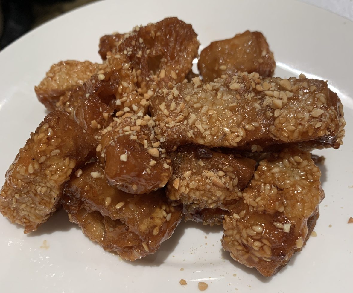 Cuttlefish You Tiao in Rojak Sauce, Har Cheong Gai, Salted Egg Salmon Skin, Jellyfish and Salmon Sashimi – all good!
