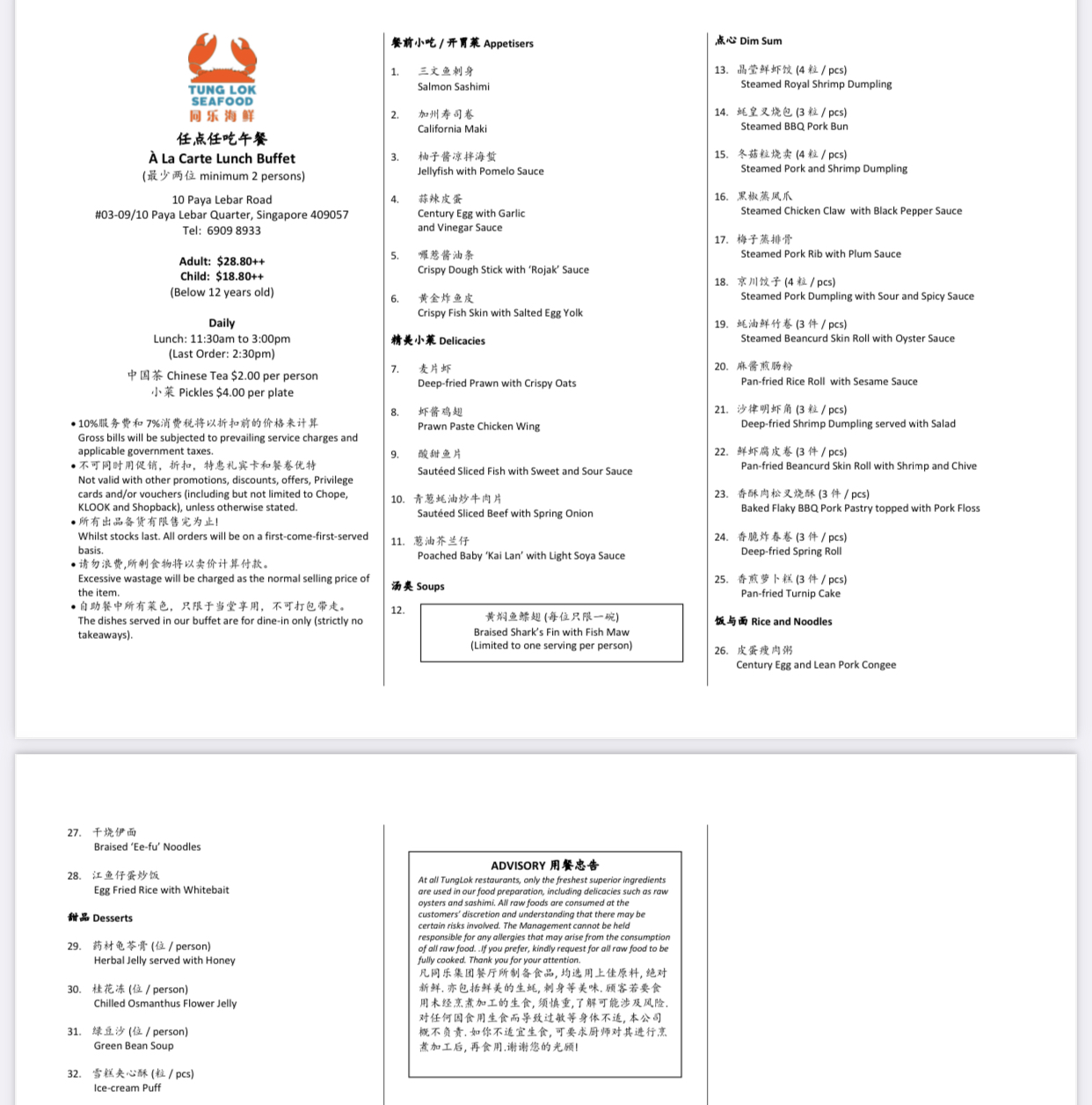 Tung Lok Seafood’s Buffet features Dim Sum and other dishes.