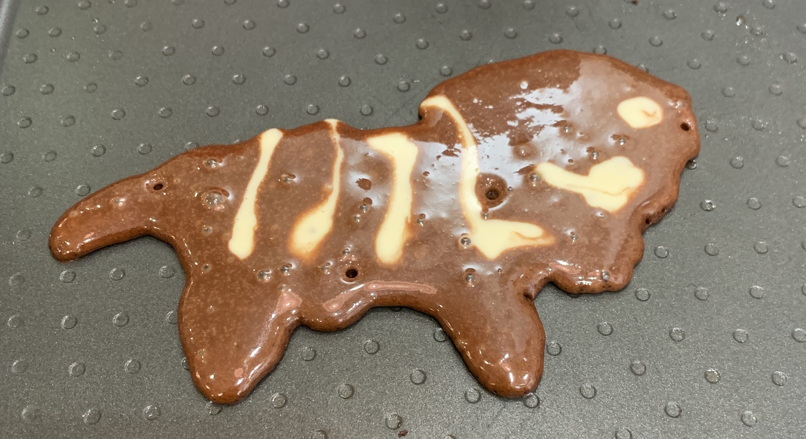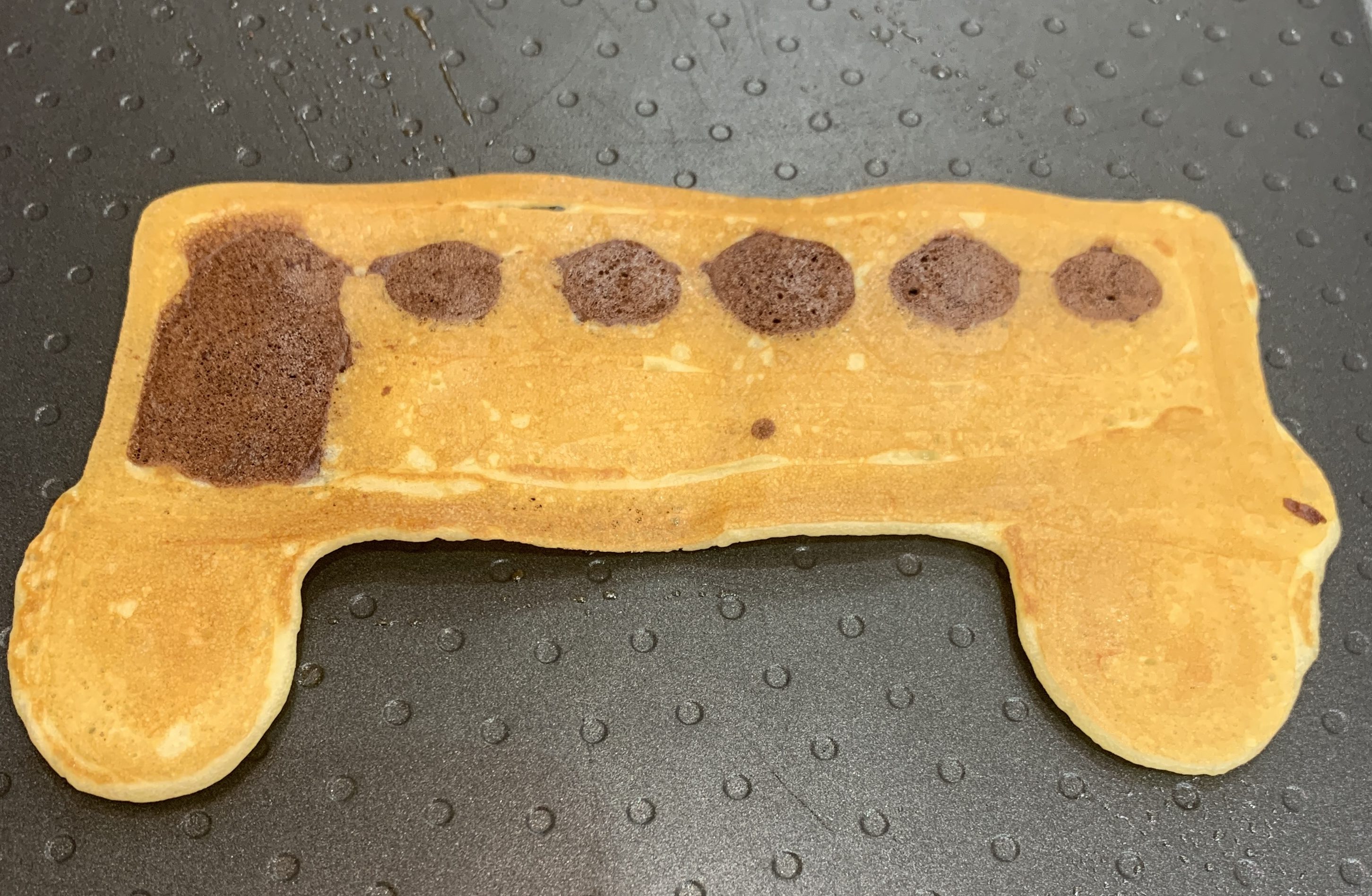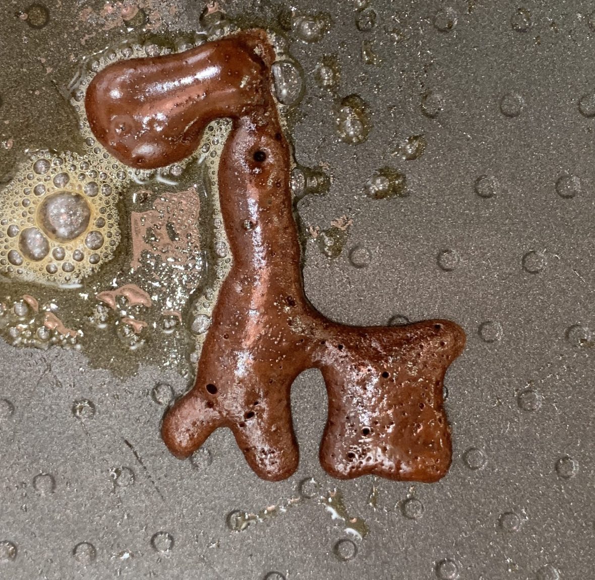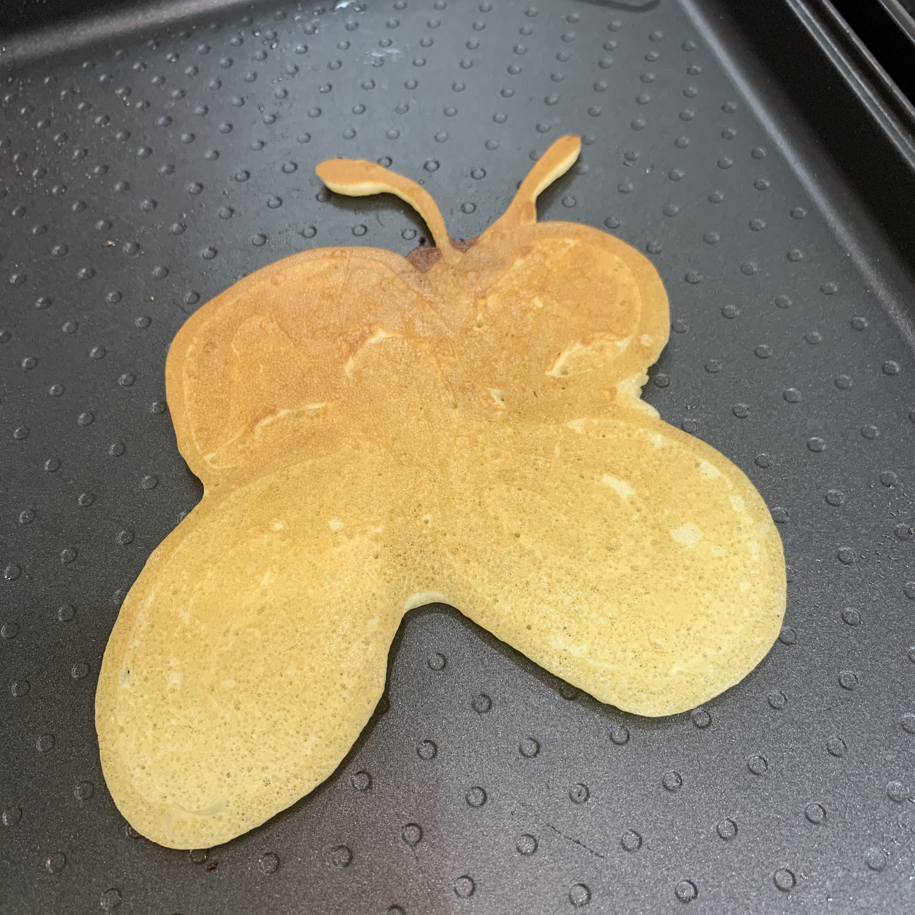 At home I make pancakes round. Here I make them as planes, elephants, tigers, buses, bears, butterflies, pandas, etc.
