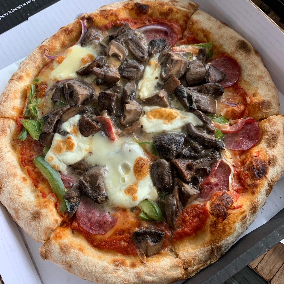 I made my own on the next one with Peppers, Onions, Pepperoni and Mushrooms. I did not expect huge chunks of mushrooms! The mushrooms overpowered everything, even the soggy middle!