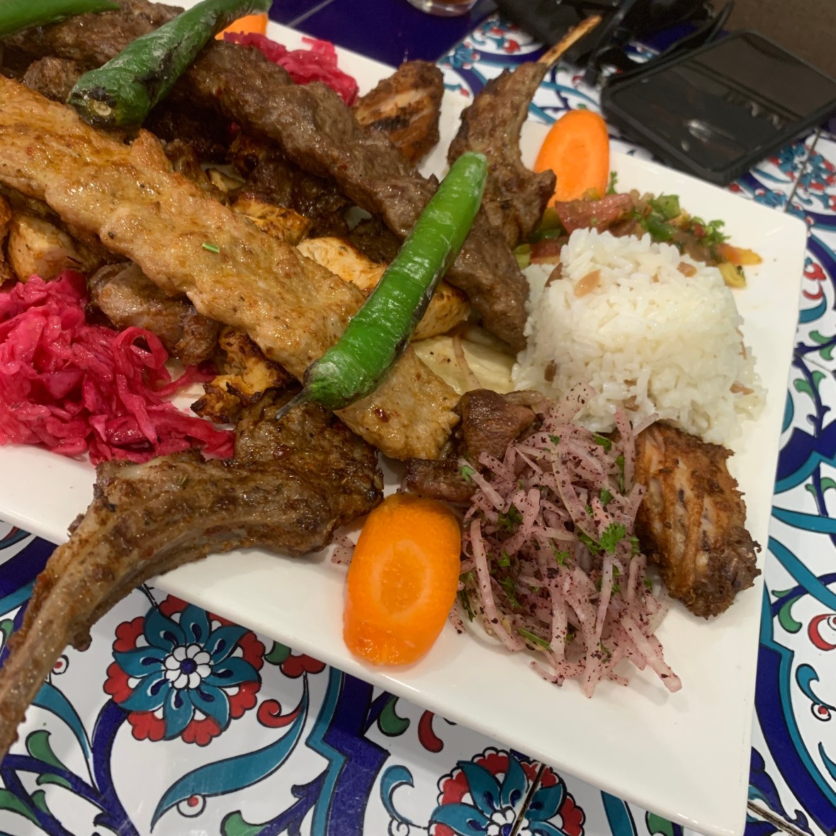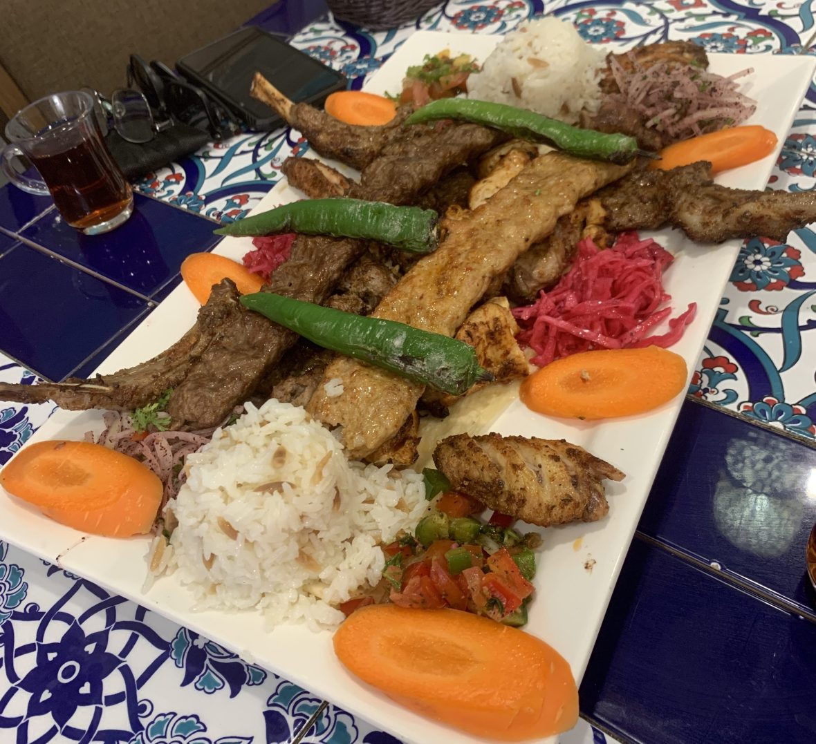 We went for a mixed grill – Chicken, Beef, Lamb cubes and Kebabs, along with Lamb Chops, Chicken Wings, Rice and Veggies
