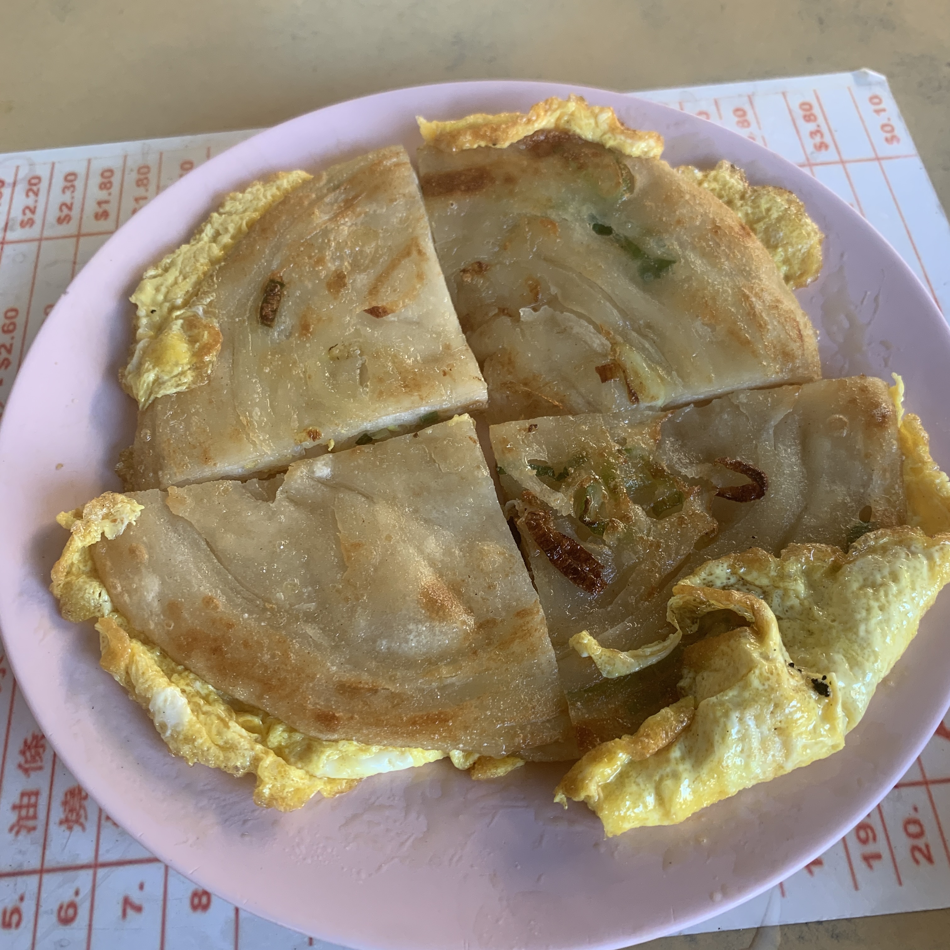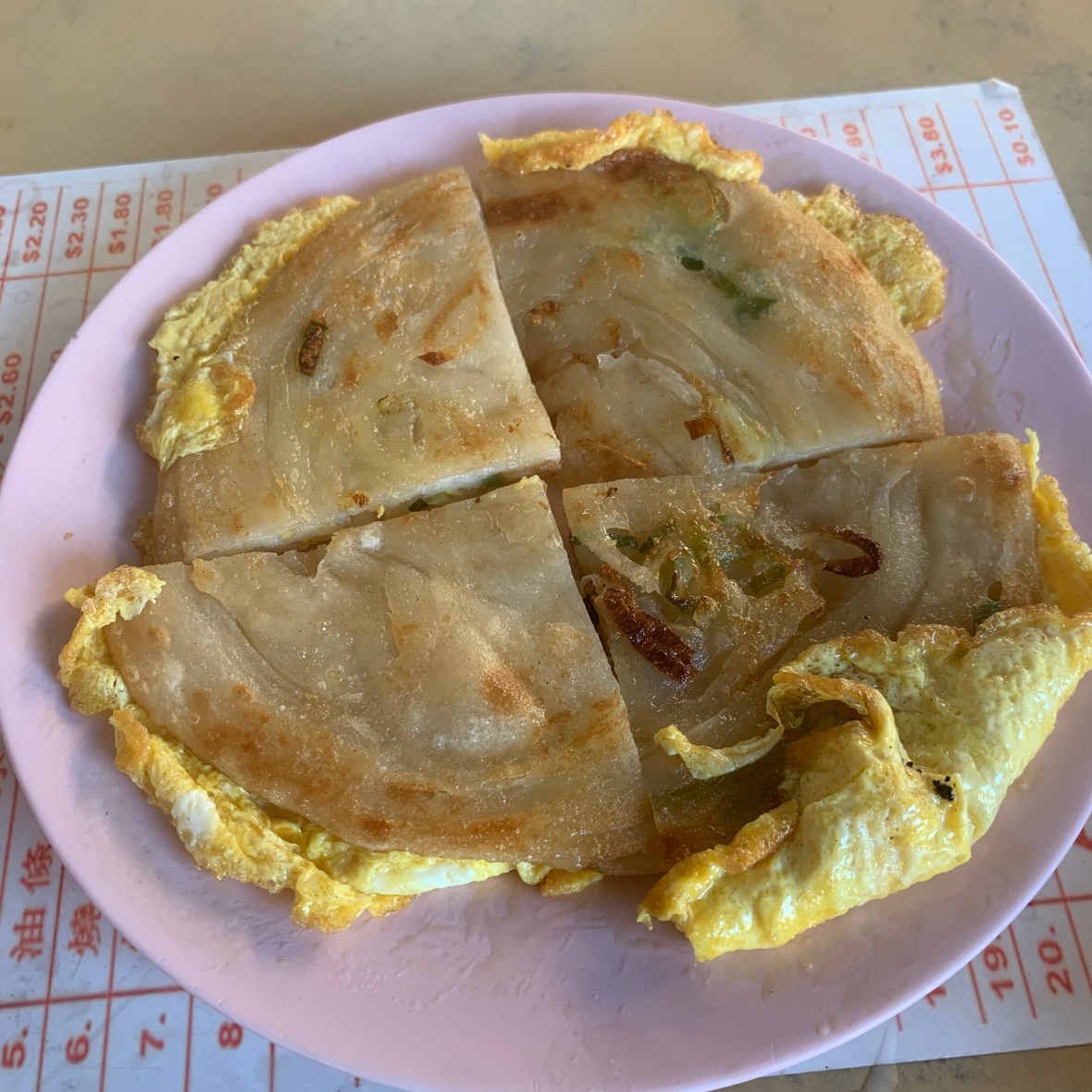 Scallion Pancake with Egg. A little greasy because the egg was added and fried, making it oily.