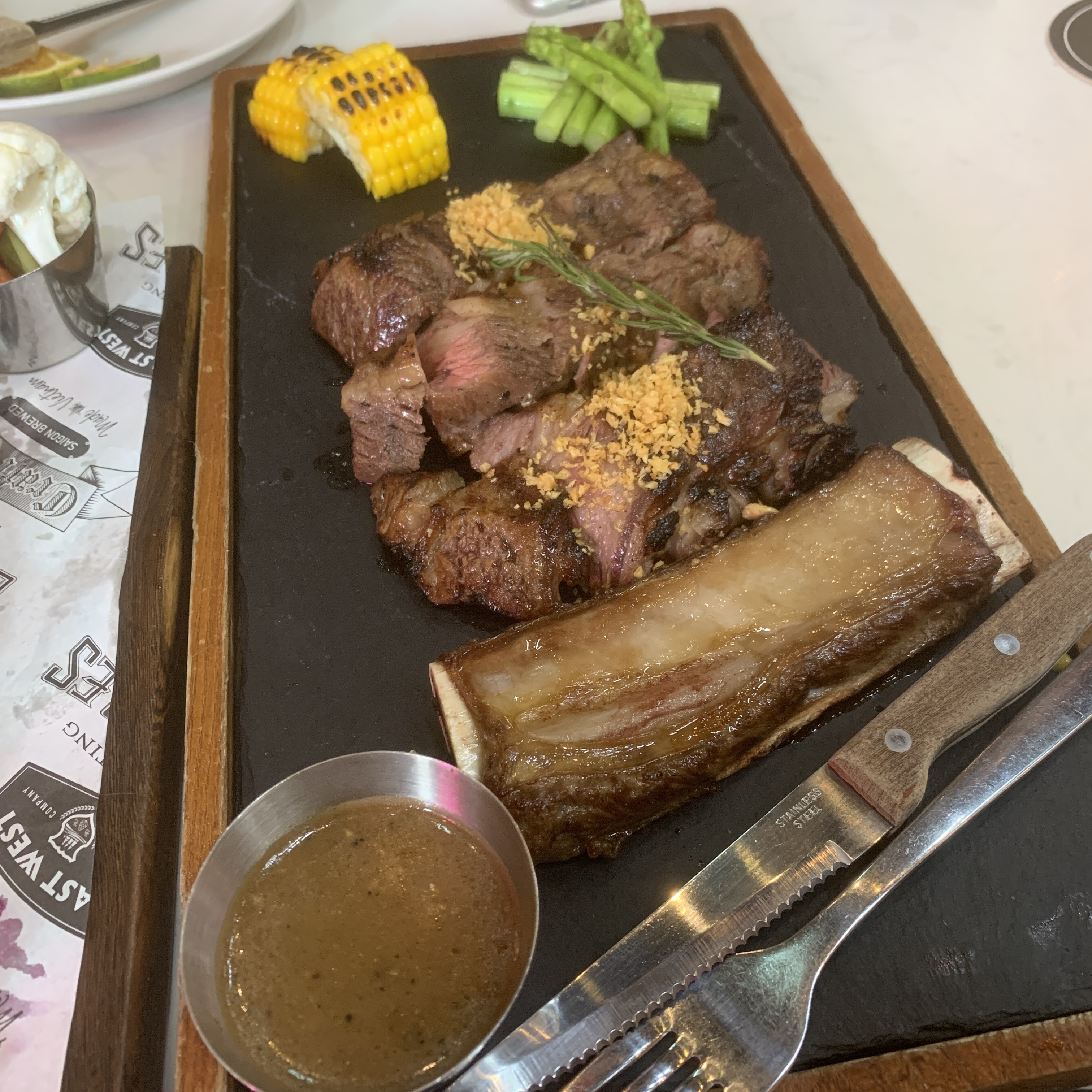 For the food, a Sausage Platter, Grilled Beef Rib with Garlic Bread and a nice Salad hit the spot for the three of us.