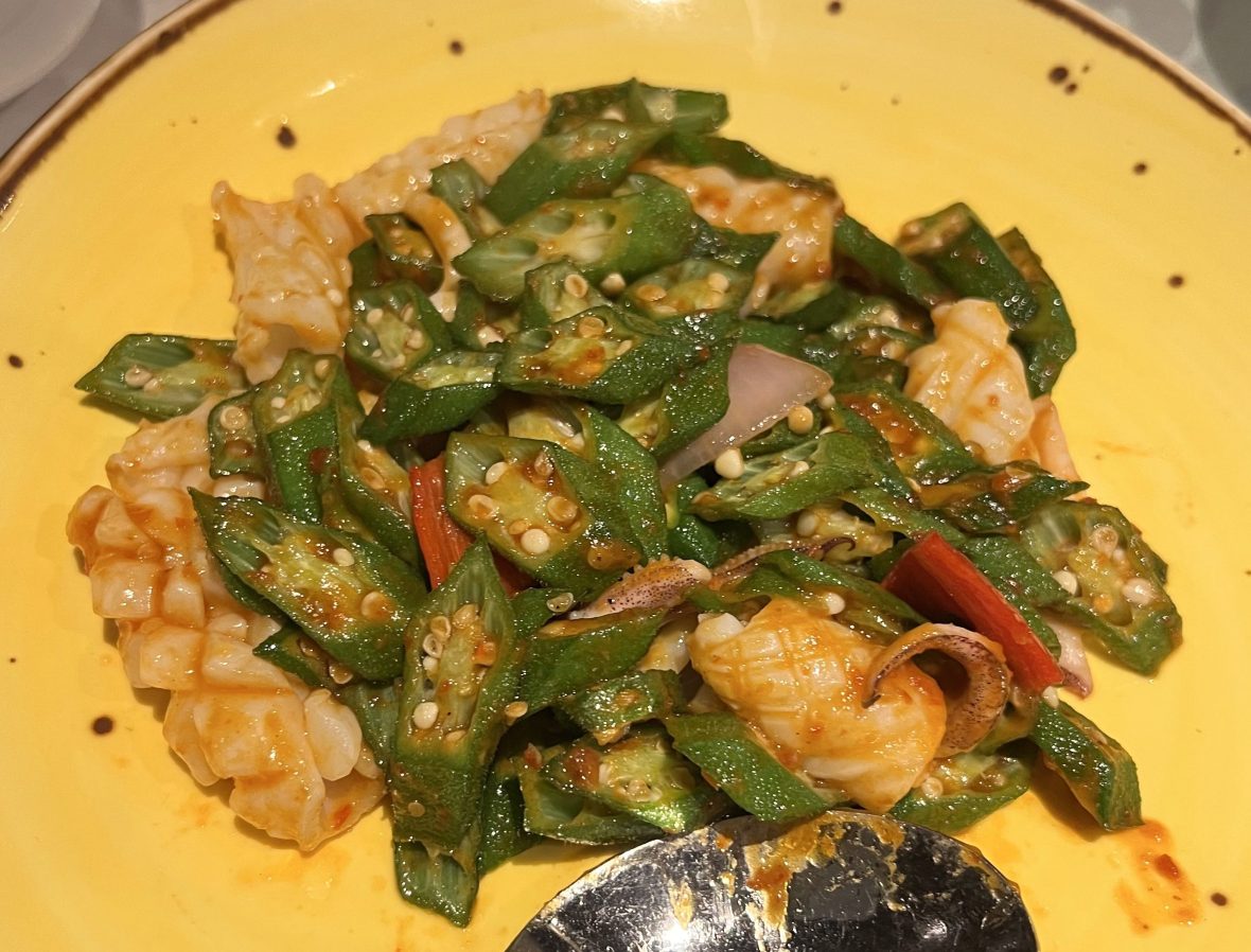 Scallops and Broccoli was fresh and very standard. Squid with Chinchalok and Lady’s Fingers had a good kick to it.