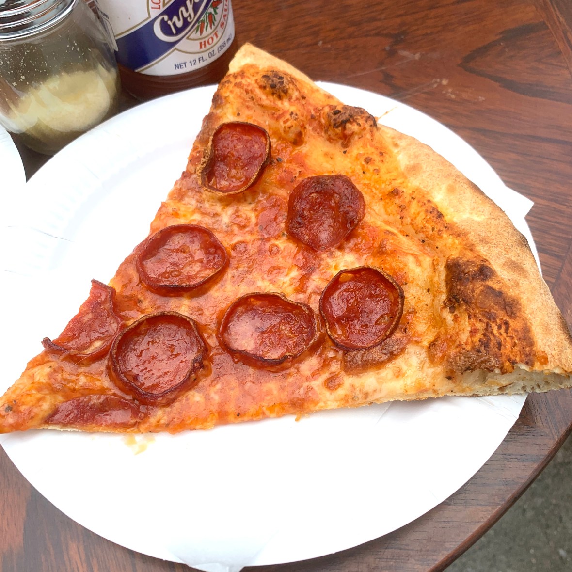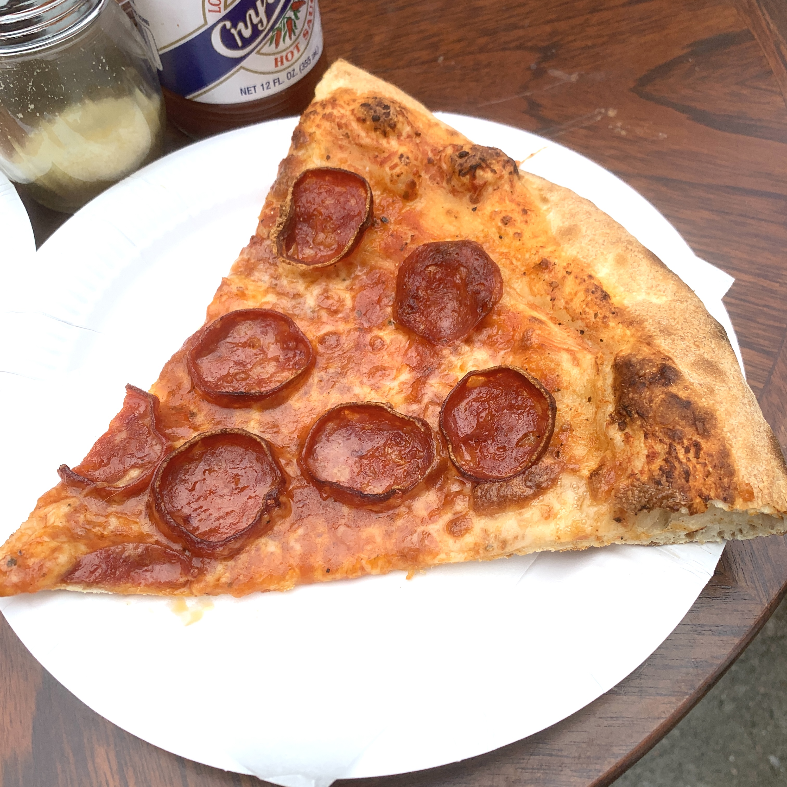 Over the course of two visits I tried a Cheese slice and a Pepperoni slice on the first visit and a Sausage and Peppers and a Cheese slice on the second visit.
