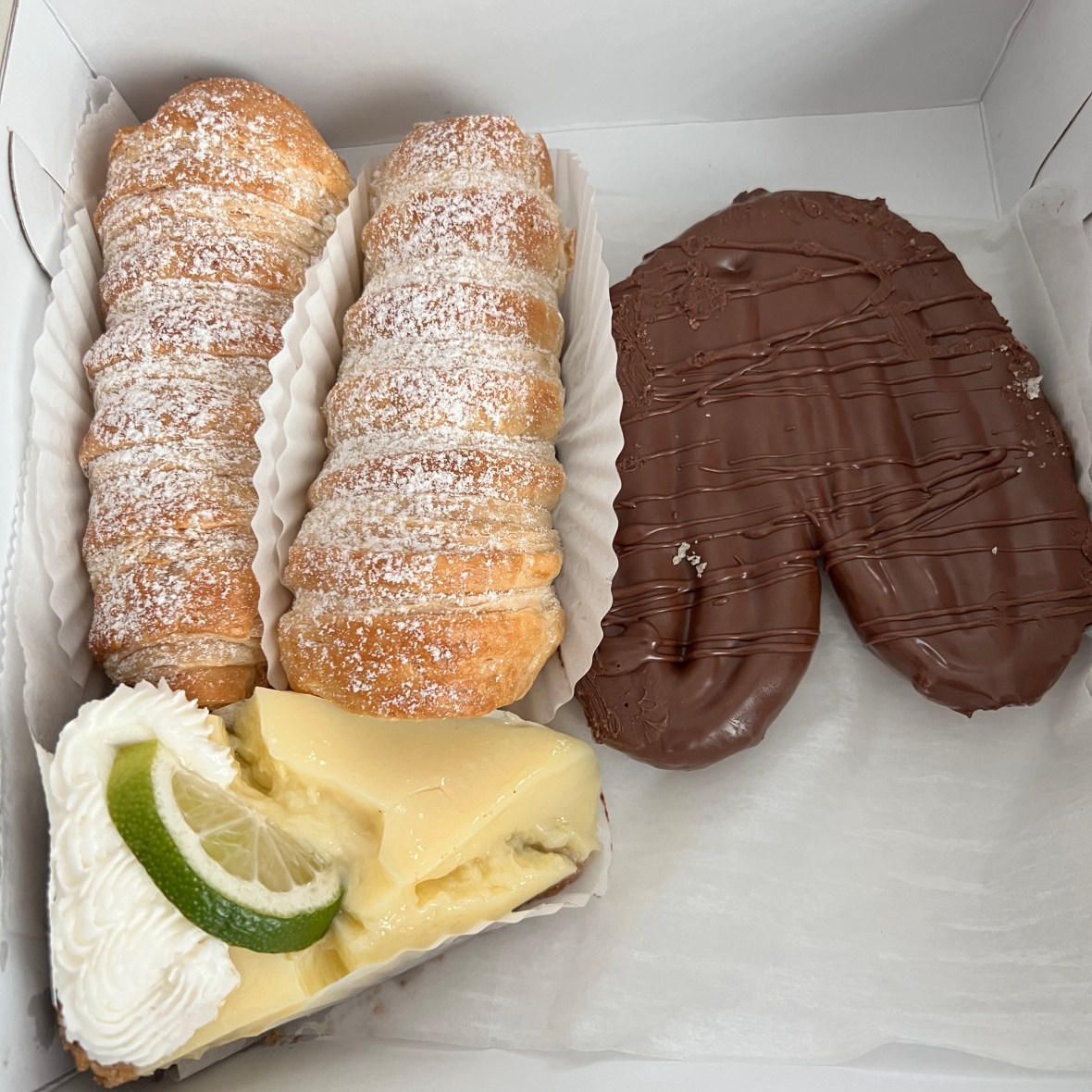 Key Lime Pie is a Florida staple, along with a Chocolate Cream Shell and a Chocolate Angel Wing.