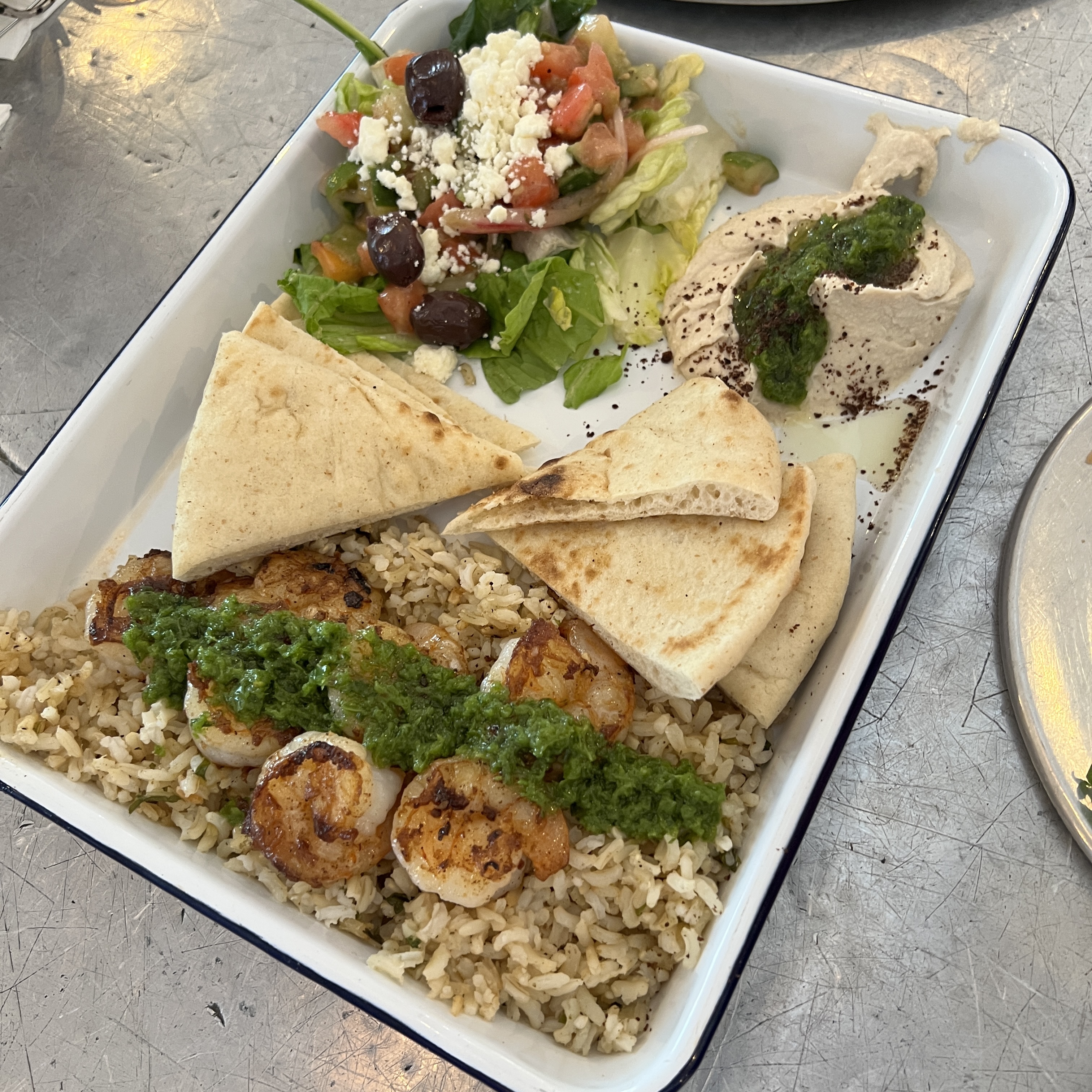 Hummus, Greek Chicken Wings and Fried Cheese Rolls are good starters.
