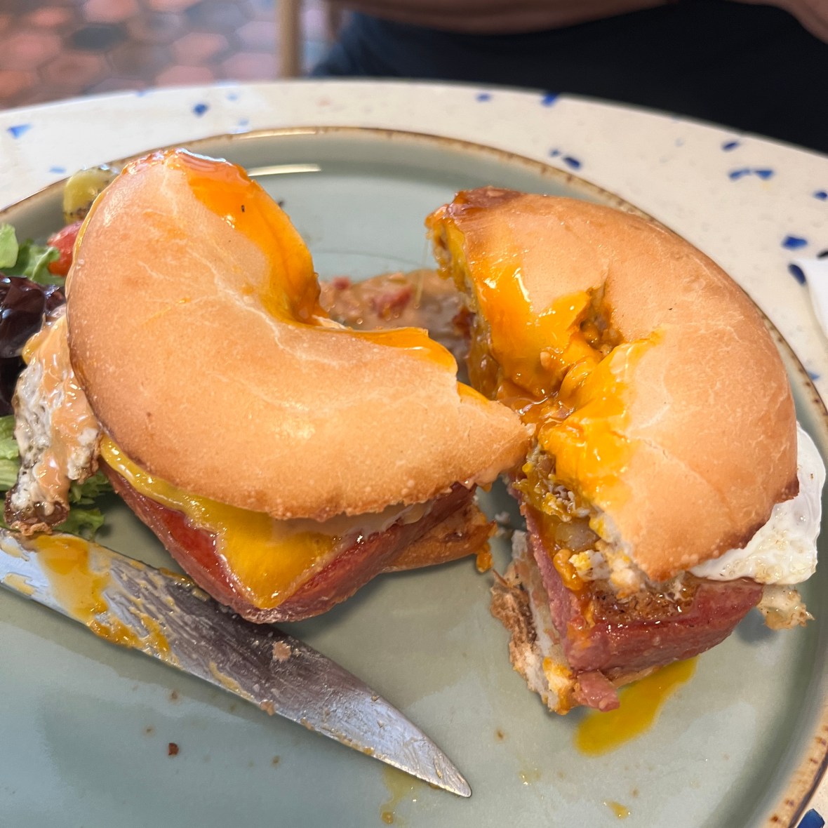 Spam Bagel. The Fried Egg inside was nice and runny and the spam piece was amazingly huge.