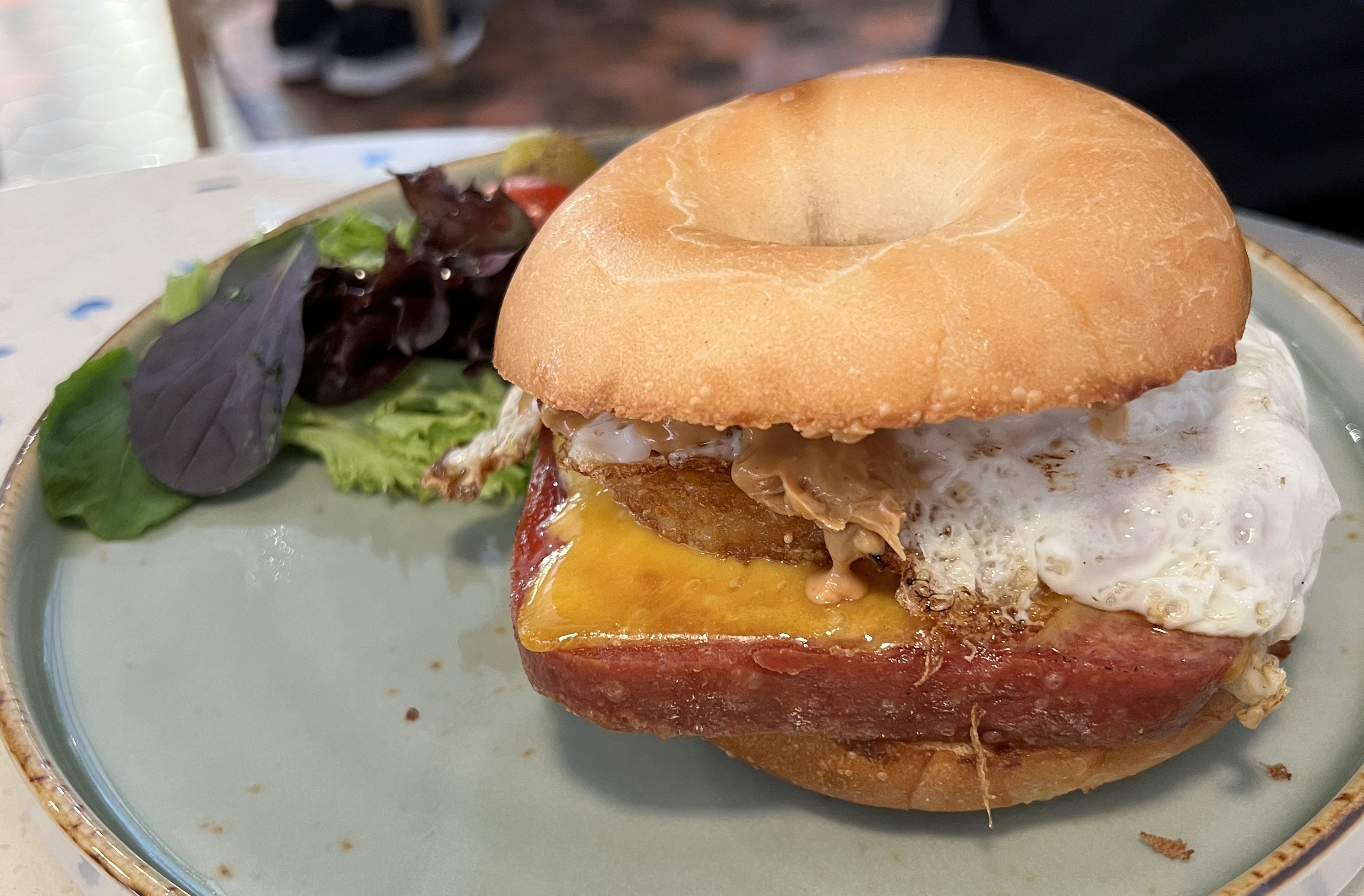 Spam Bagel. The Fried Egg inside was nice and runny and the spam piece was amazingly huge.