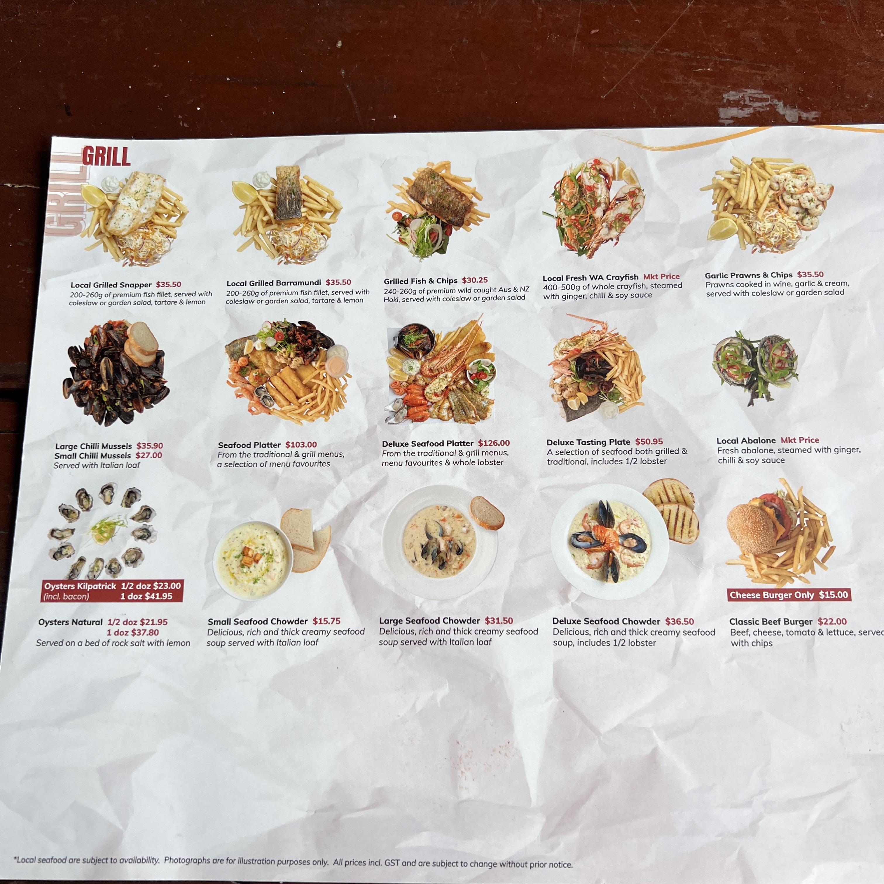 After looking at the extensive menu, we just decided to go with the Deluxe Seafood Platter for A$126.