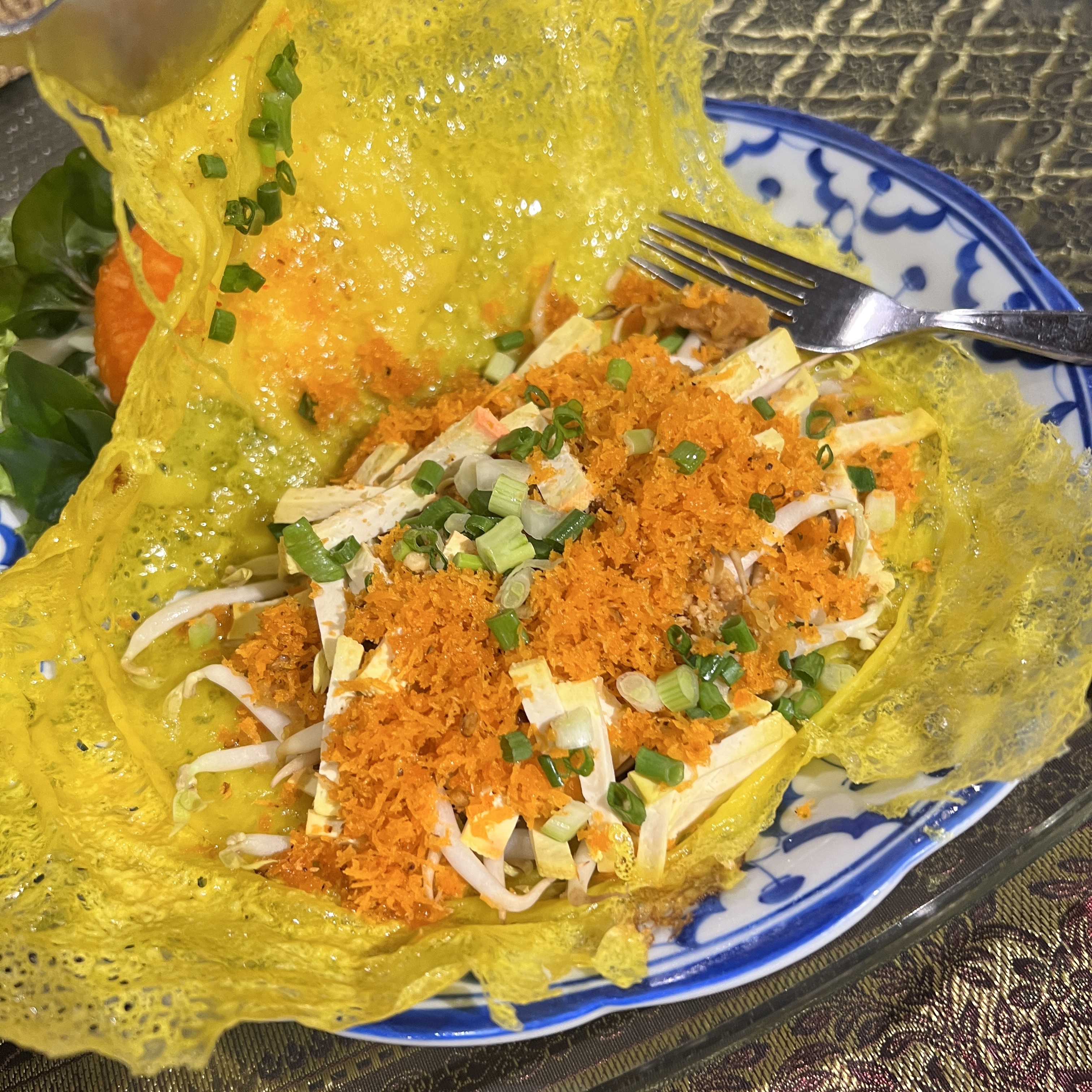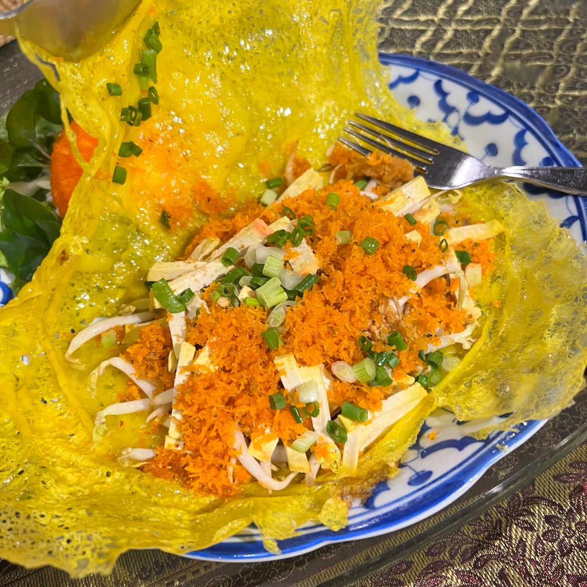Shredded Vegetables in Egg Wrap, which is close to a Ban Xeo in Vietnamese cooking.