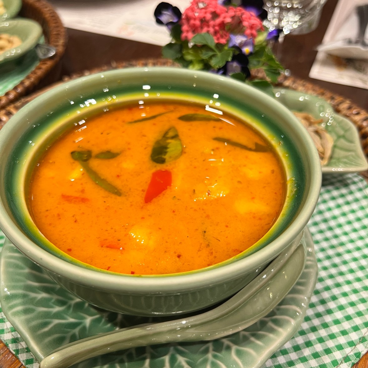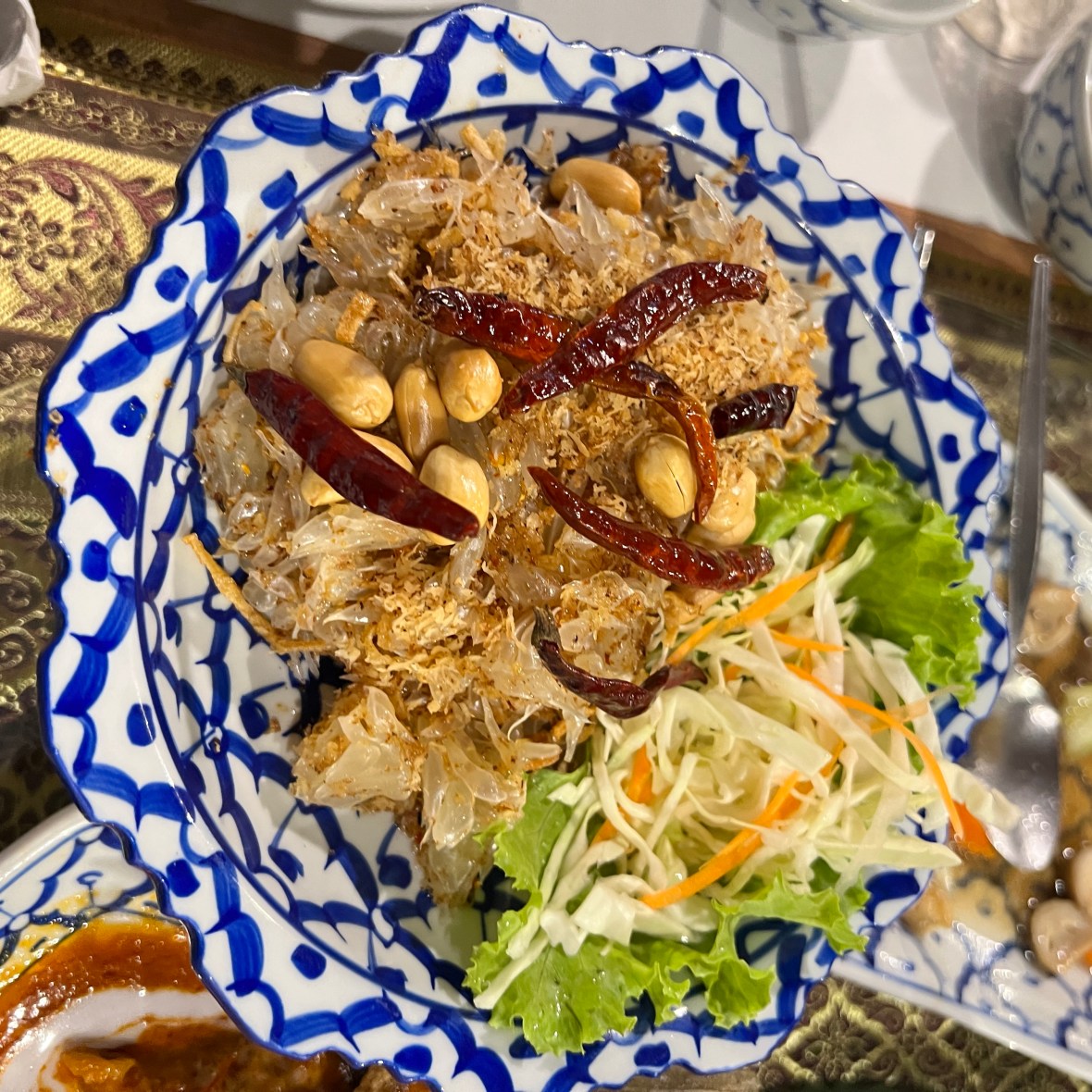 We started with Shredded Coconut and Cashews in a Flower Petal. I also had some Prawns which we added on top.