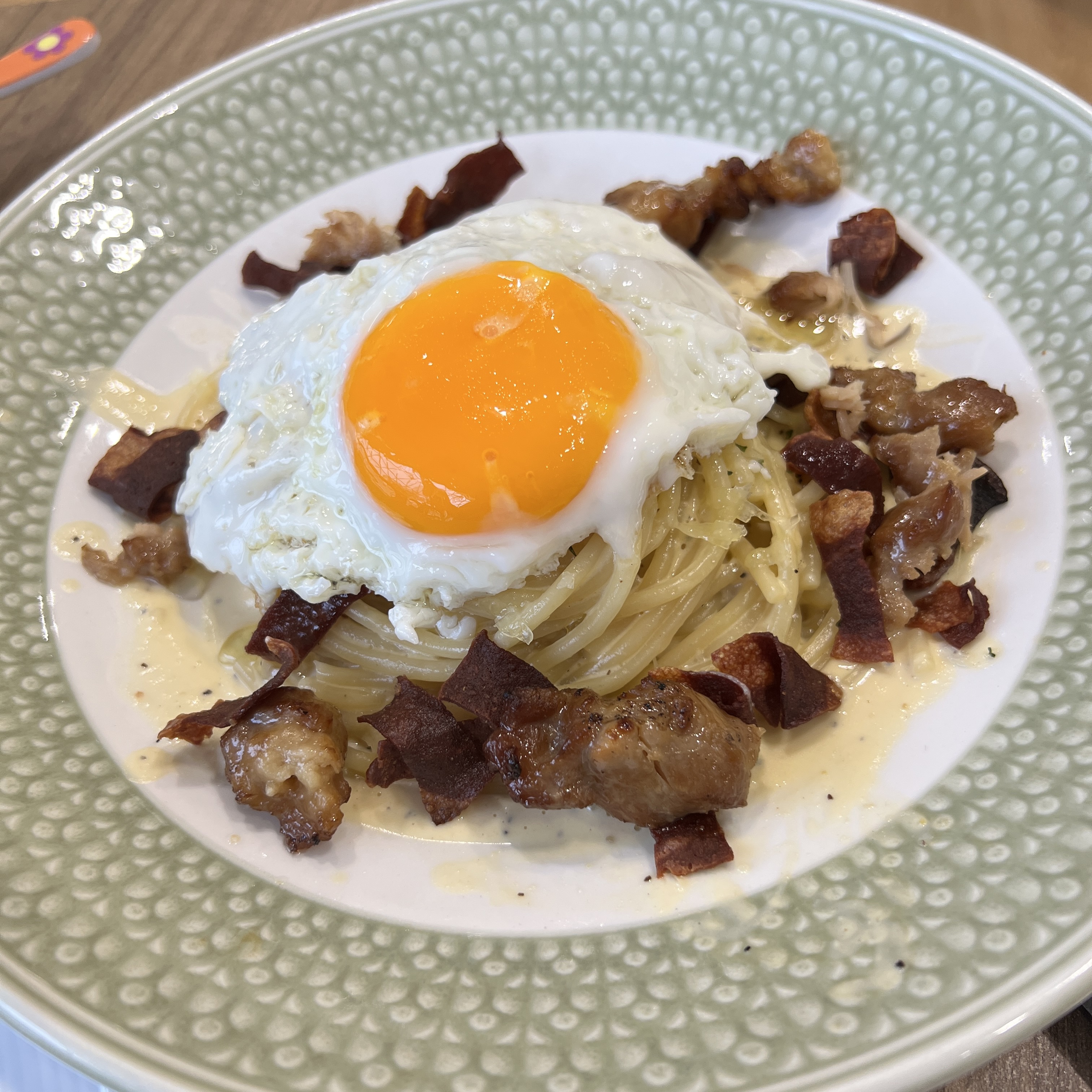 Carbonara with Turkey Strips and Chicken, topped off with an egg – my son’s choice. It was pretty well done, better than most chain places for sure.