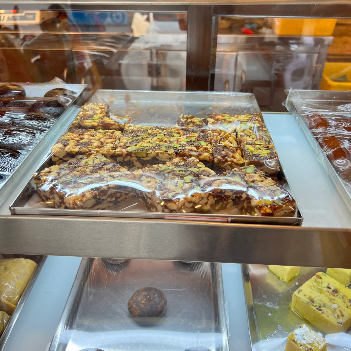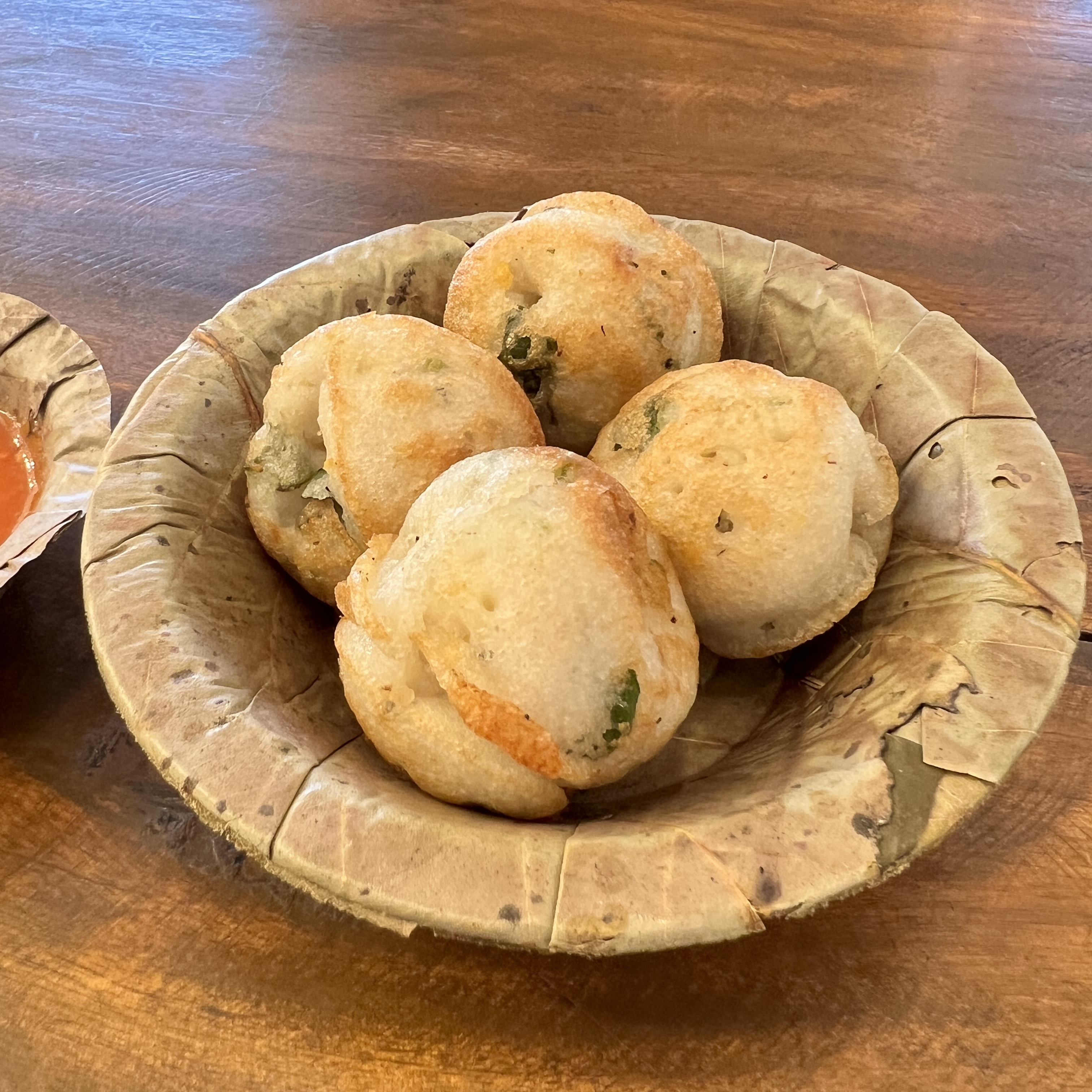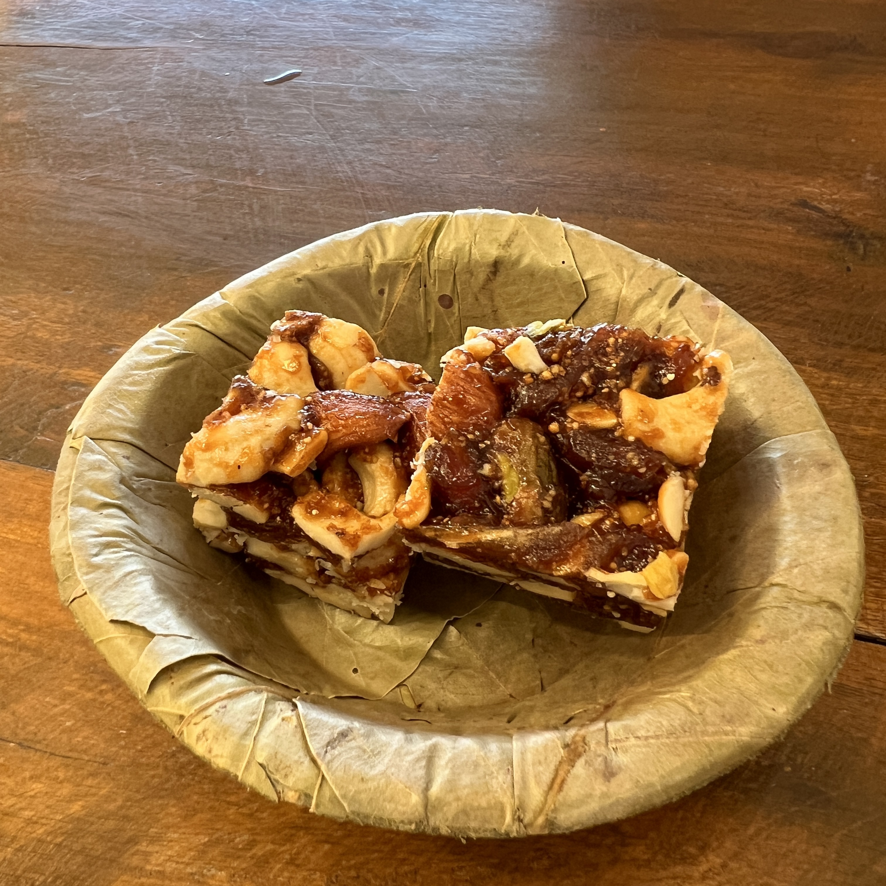 We had some hot snacks, something like a Takoyaki, but with just dough and vegetables, some Date an Nuts Barfi, and then some Coffee.