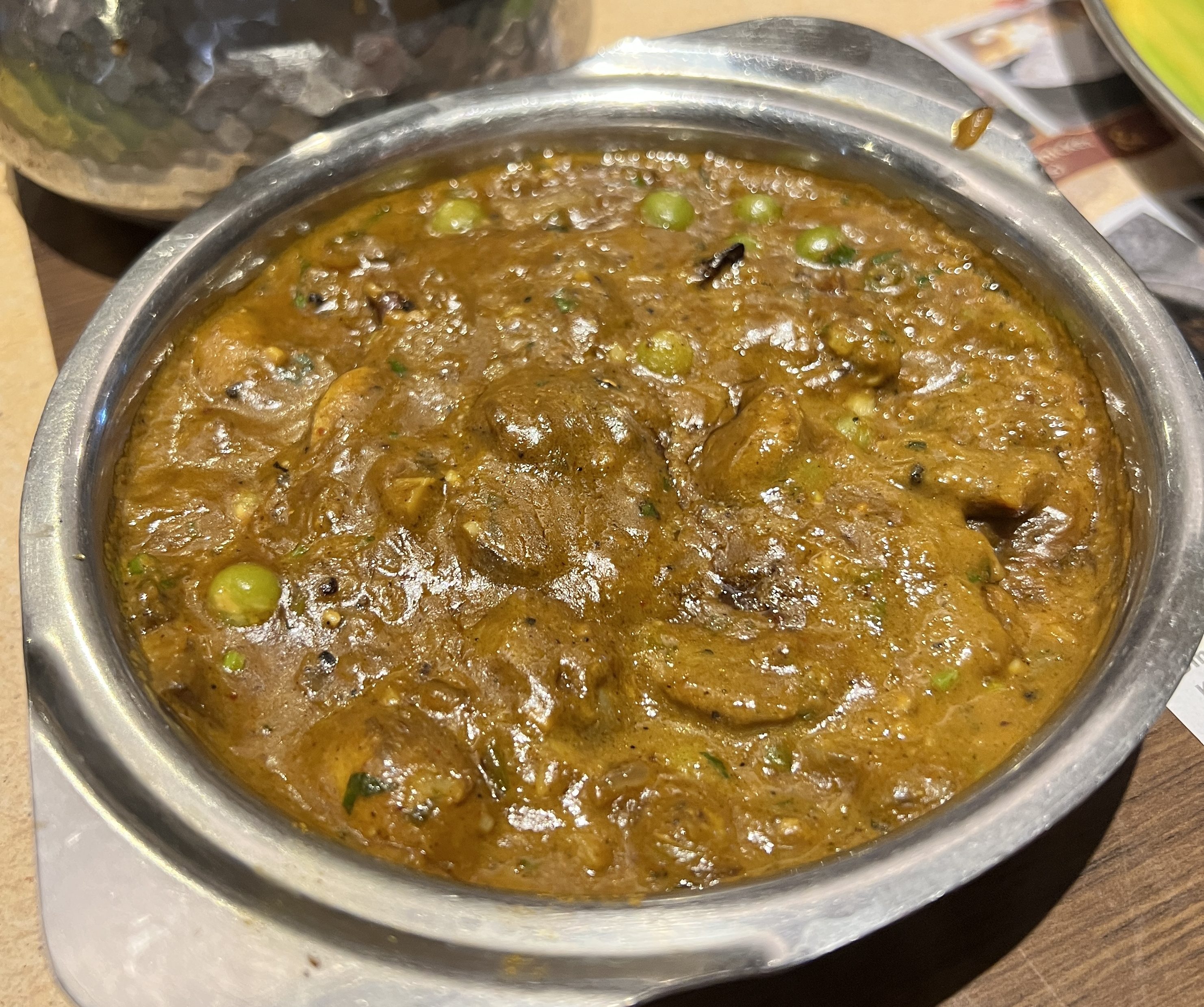 A Pea and Mushroom Curry with Paratha was an enjoyable meal, and even better on a Banana Leaf!