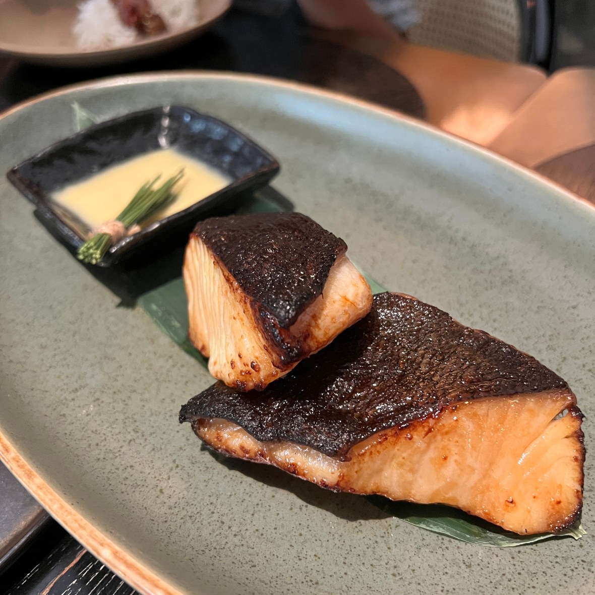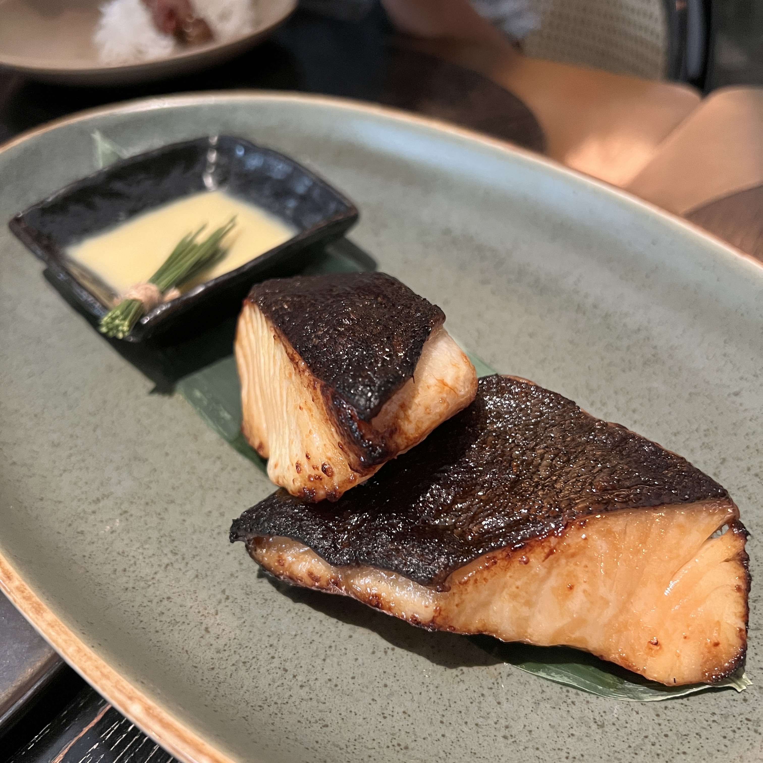 Sticky Black Cod with Mustard Yuzu Sauce. So tender and melt in your mouth. Just absolutely amazing.