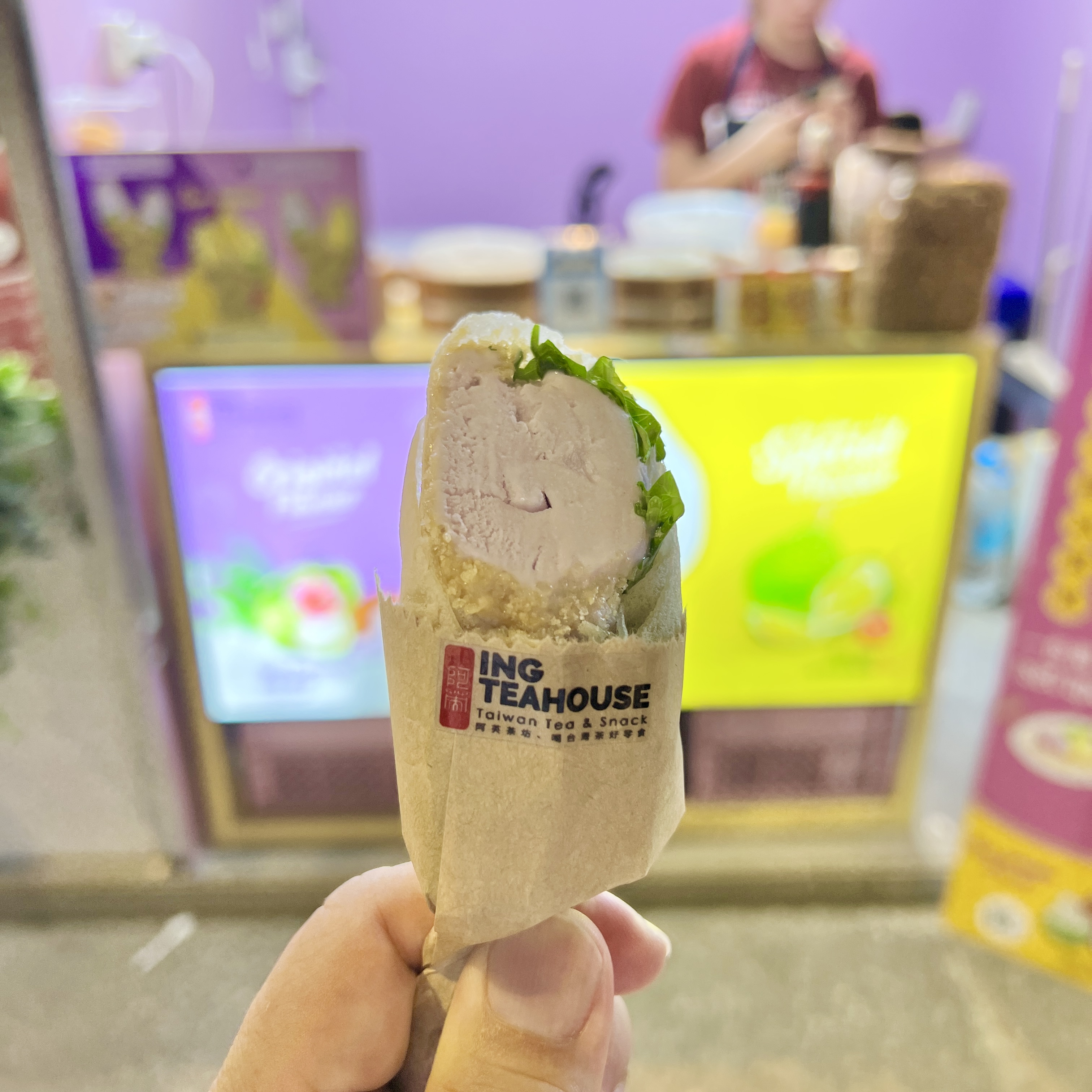 Next business was Taiwanese style Ice Cream Roll. Taro Ice Cream with shaved Peanuts and Coriander inside a crepe. Great to cool down in the heat.