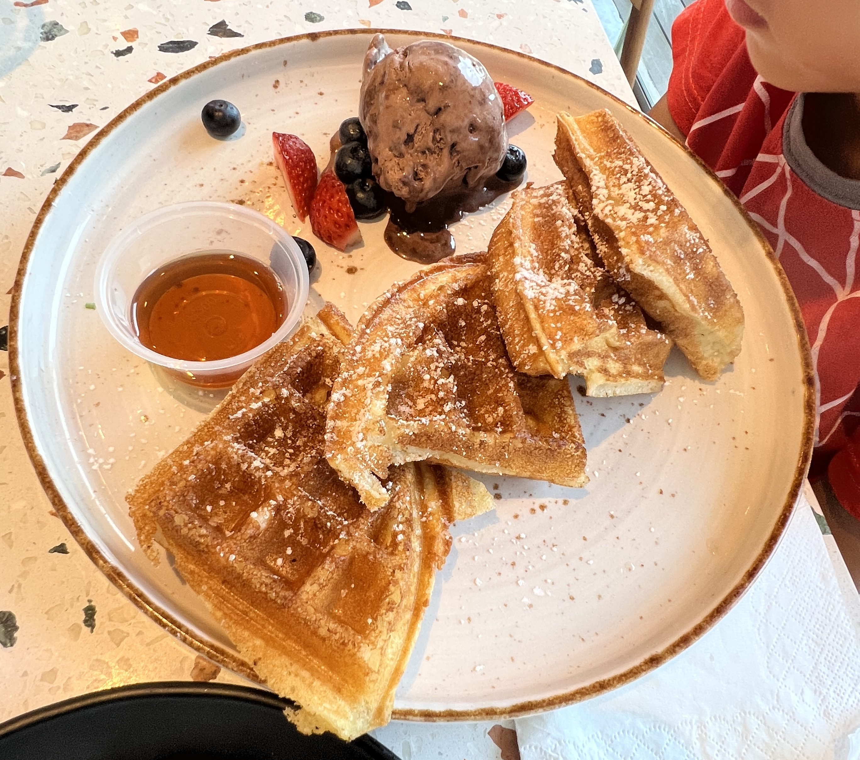 And the Waffle with Ice Cream. It’s listed under Sweets and Dessert, but we let our son have it for breakfast.