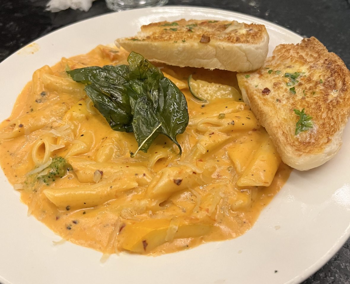 I also decided to try their Pasta Primavera but was a little surprised at an orange sauce that was creamy and a bit spicy. Not quite what I expected from a Primavera.