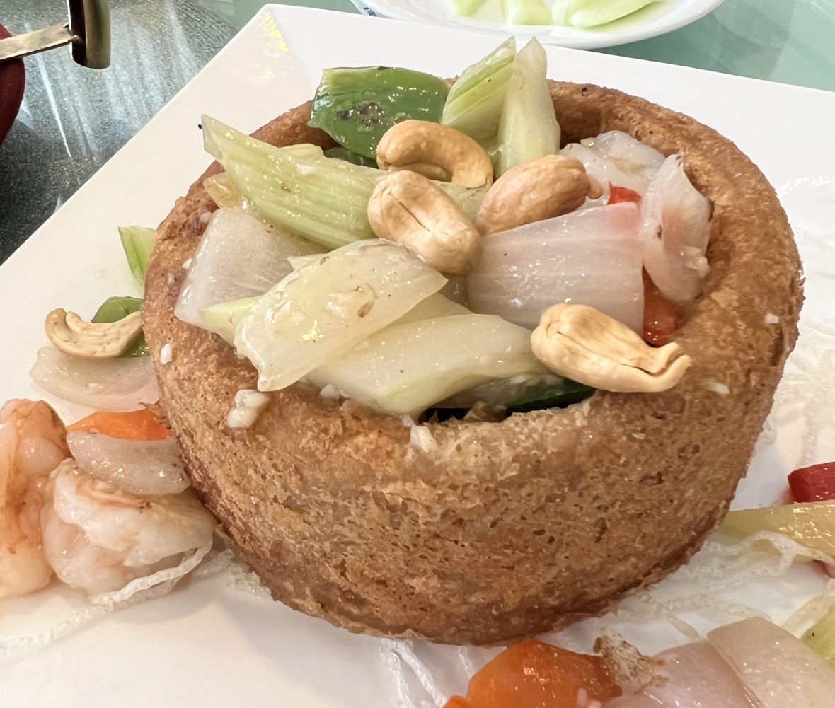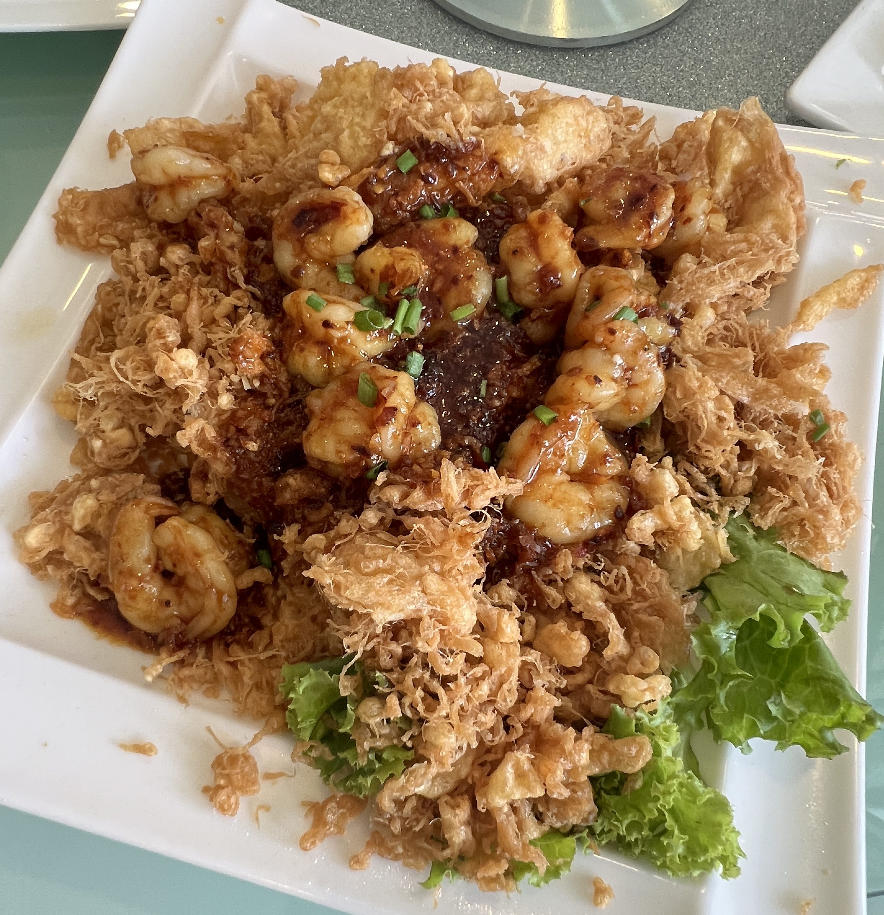 Prawns with Fried Egg, Yam Ring, Tofu, Spinach with Eggs and Lop Cheong with Veggies were all standard.
